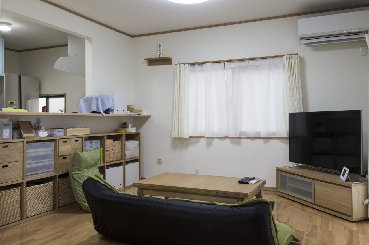 以前は和壁で押入れのある和室でしたが、この和室と居間をつないで一つにして広いLDKへ生まれ変わらせました。また、細かな段差がありましたが玄関を上がってから各部屋まで段差を無くしました。 和室の押し入れはクローゼットに。