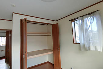 クローゼットを撤去し、その奥にあった廊下から入るクローゼットを居室/寝室から入れるWIC(ウォークインクローゼット)にしました。元のクローゼットの分お部屋が広くなり、収納力のあるWICができて暮らしやすい居室/寝室になりました。