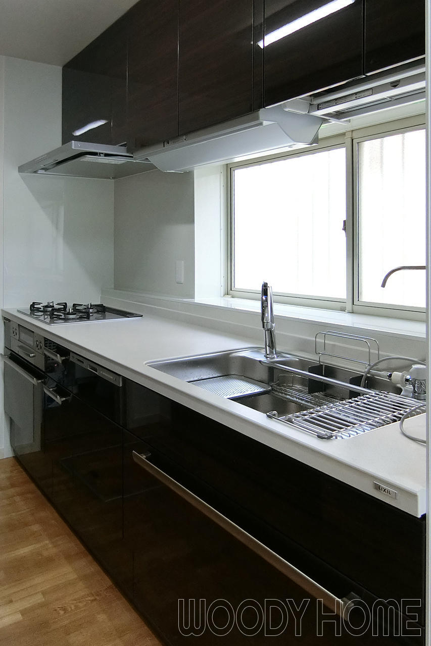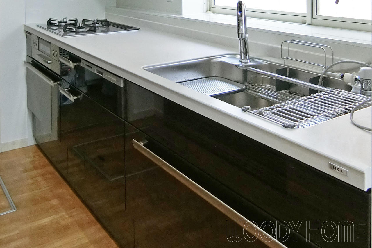 以前からお使いのキッチンが古くなり、扉が閉まらなくなったり、タイルの目地やレンジフードの掃除に手間がかかってしまい不便を感じられていました。壁付に設置されたシステムキッチンはLIXILのリシェルです。タイル貼りだったキッチン脇の壁面には掃除の楽なキッチンパネルを貼りまた、扉はスッキリとした収納力たっぷりのスライドタイプになり、見た目も使いやすさも抜群のキッチンリフォームとなりました。