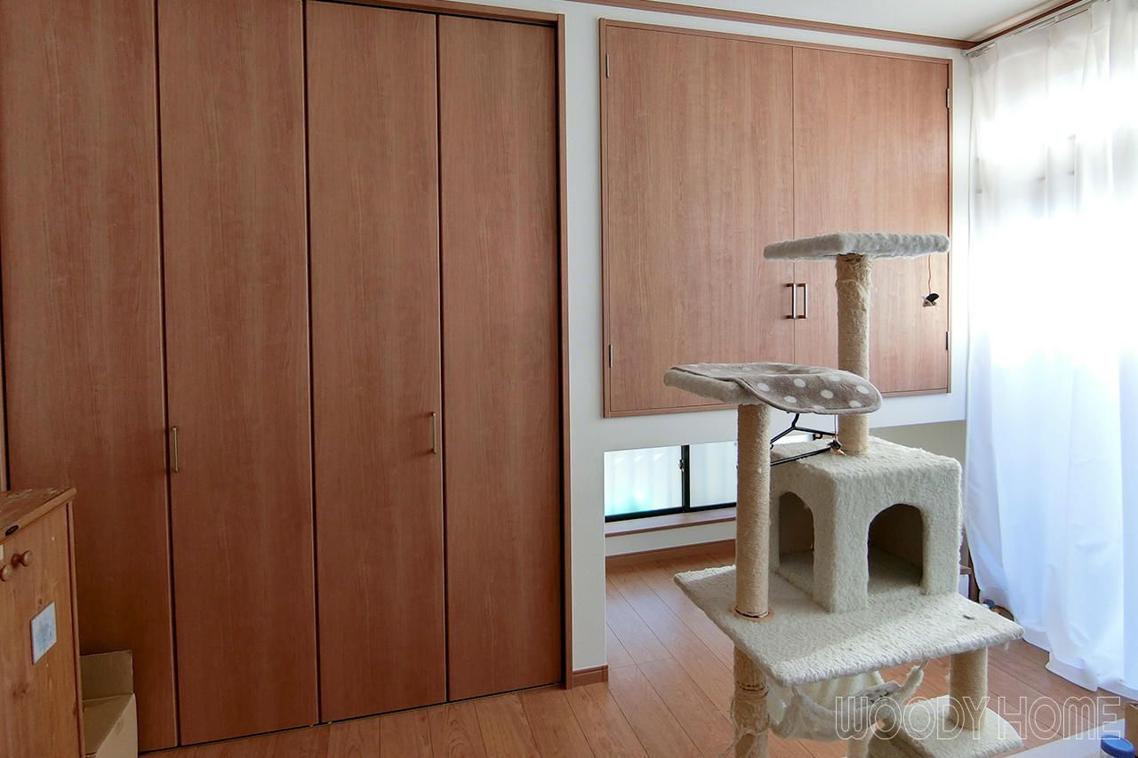 和室をリビングと繋いで広いLDKにリフォーム。床と壁には断熱材を封入し、床下や壁厚がなく断熱材のなかった壁からの冷気侵入を抑えます。和室だったところは、押入れをクローゼットにして床の間だったところは収納を増やすために吊押入れを造作。レコードでの音楽鑑賞がご趣味のご主人が、飼い猫たちと戯れながらまた、夫婦で晩酌を愉しめるような広々としたLDKです。