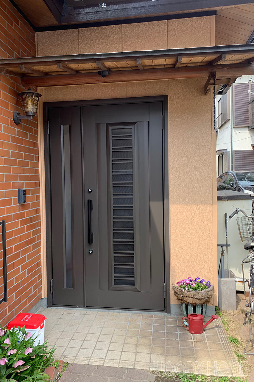 扉一枚当たりの幅が広くなり出入りがしやすくなり、親子扉を開放すれば大きなものの搬入も楽になります。玄関扉はLIXILの「プレナスX」、採風可能で玄関を閉めたまま風を取り込めるので、家全体の換気に役立ち玄関からの換気の際の防犯上も安心です。