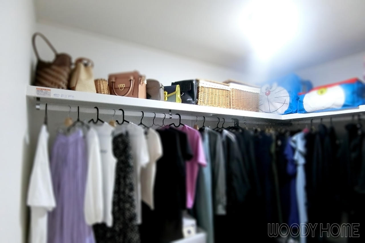 寝室のWICには、棚など無かったので枕棚セットを設置。ハンガーを掛けられるようになりとても便利になりました。
