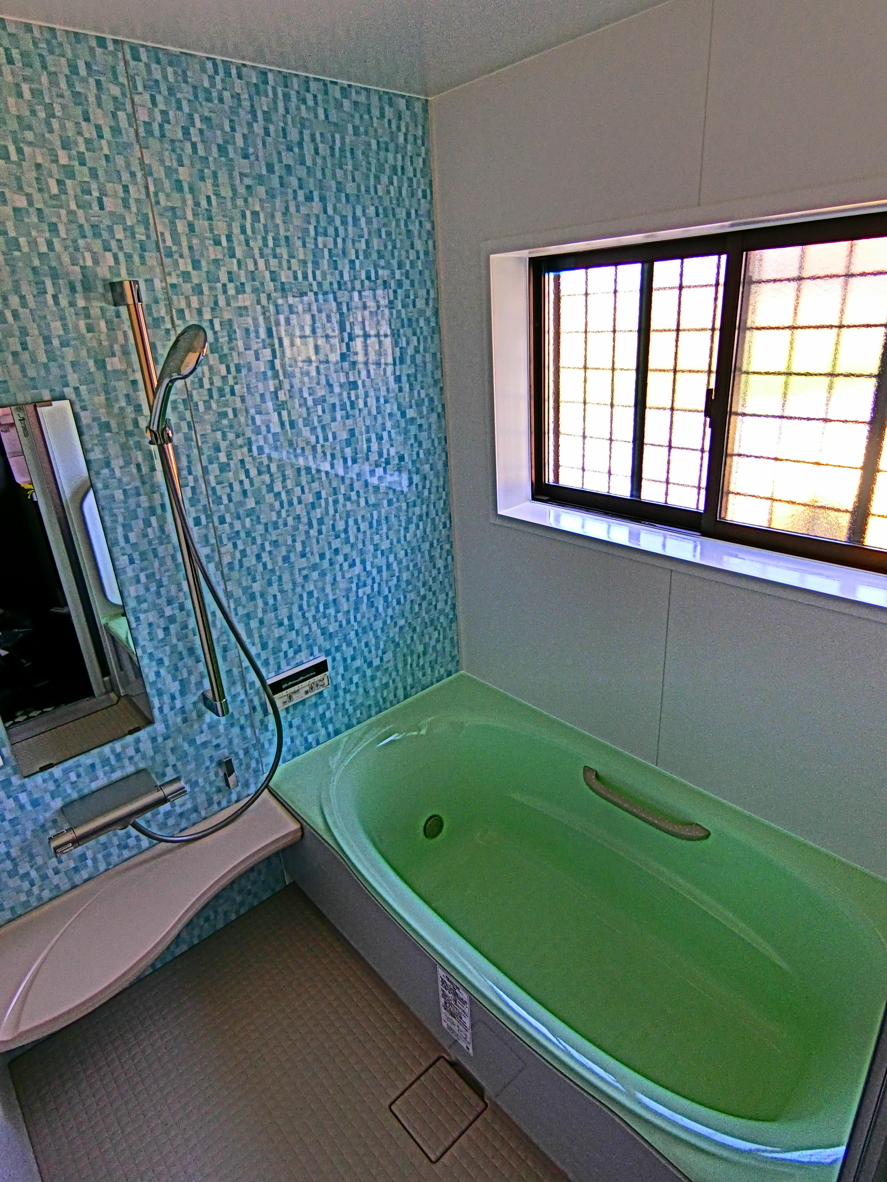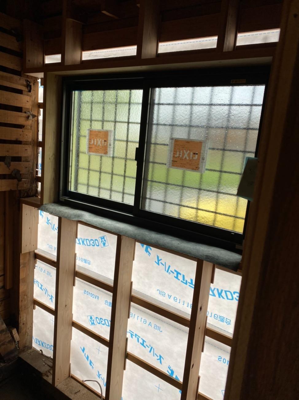 浴室の断熱で重要な窓。下地を換えてサッシごと交換しました。サッシは断熱性能の高い「サーモスL」。室内側のサッシ枠は樹脂になっているので、結露しづらい構造です。浴室は「アライズZタイプ」です。