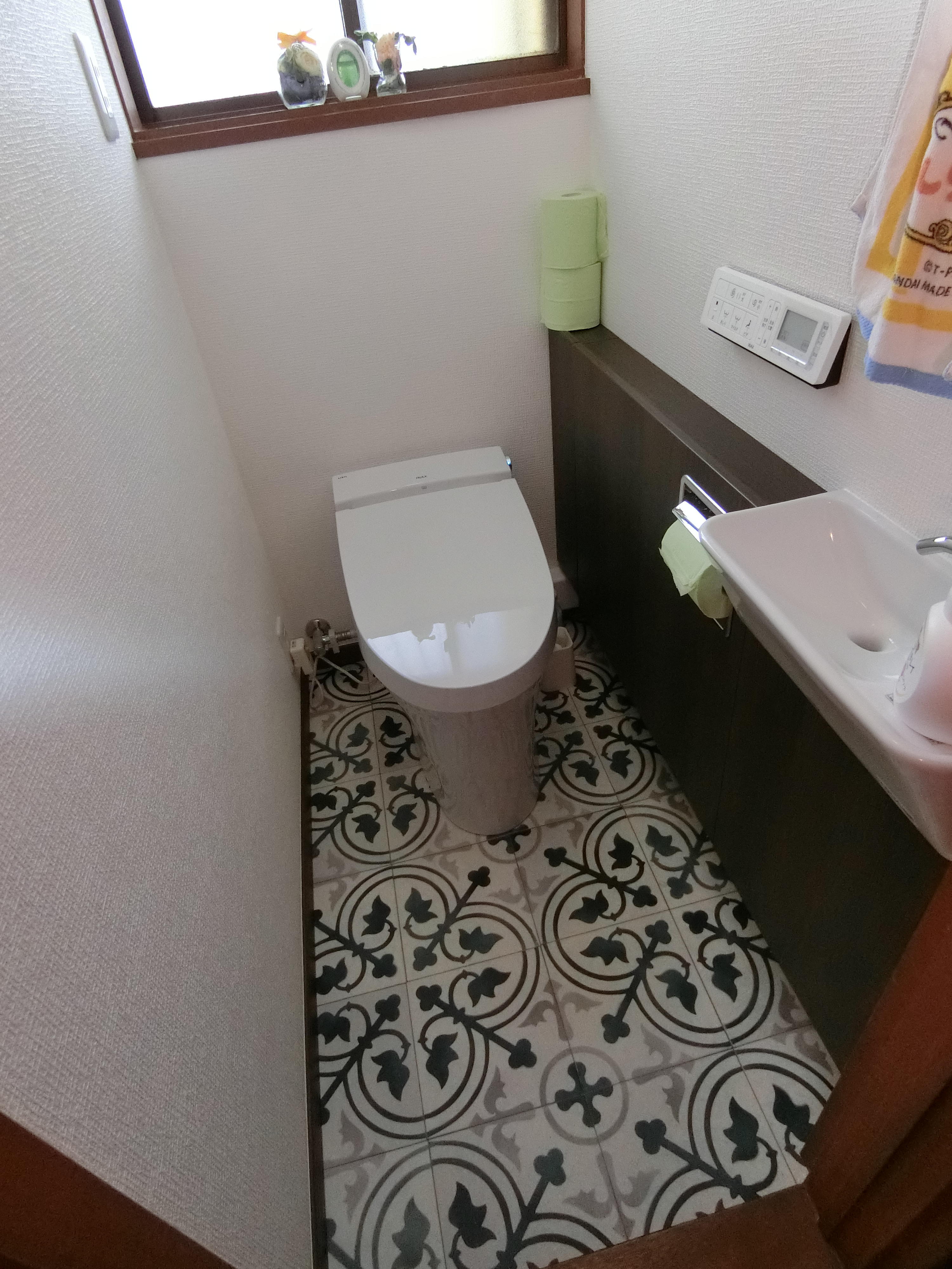 手洗いタンク付きトイレでしたが、手洗器を別に取り付けたいとのご希望で、交換したトイレは新商品「サティスSタイプ」リトイレ手洗器付。手洗器の給排水を増設せずに設置できます。トイレの設置は1日で施工可能です。