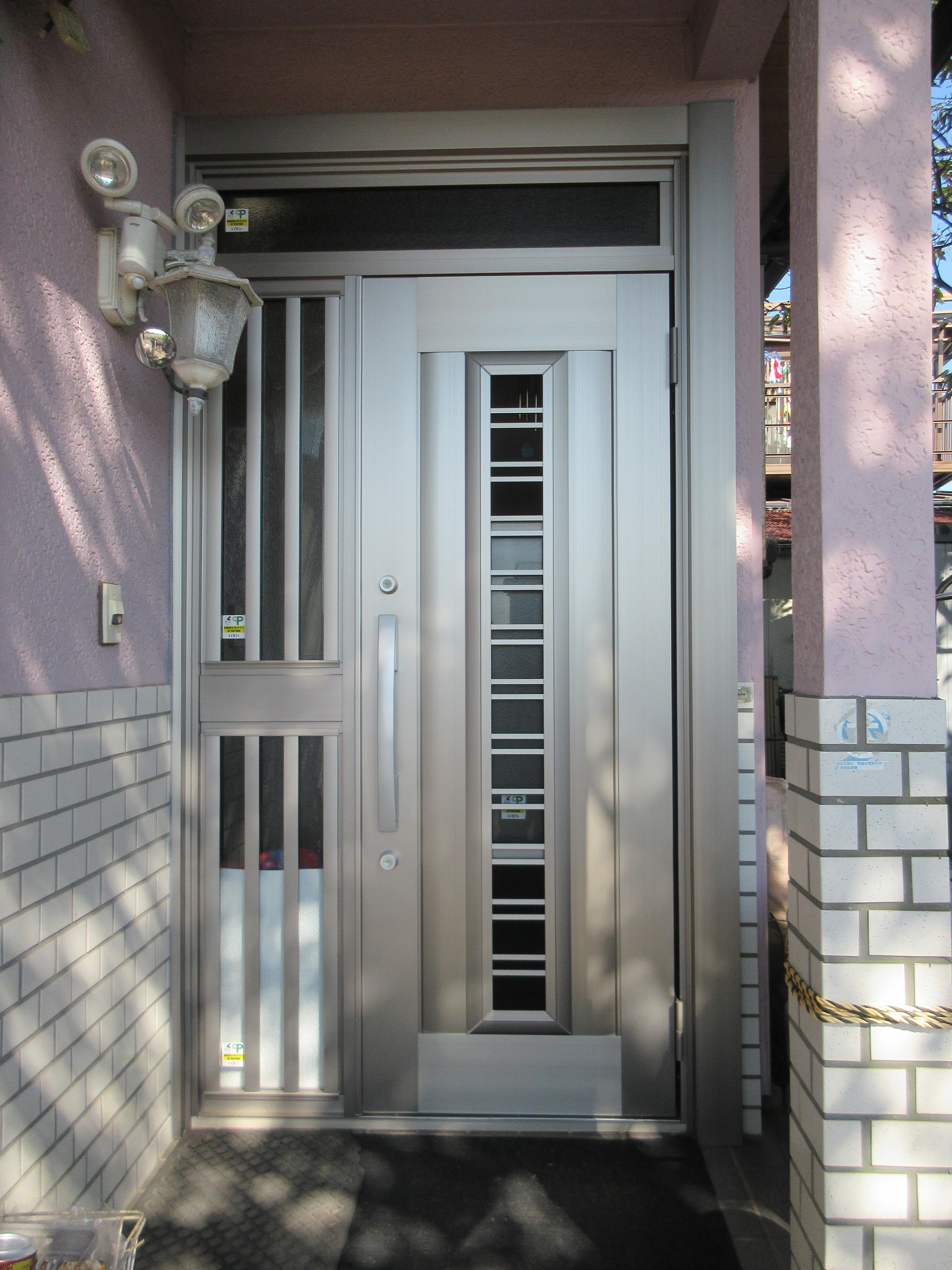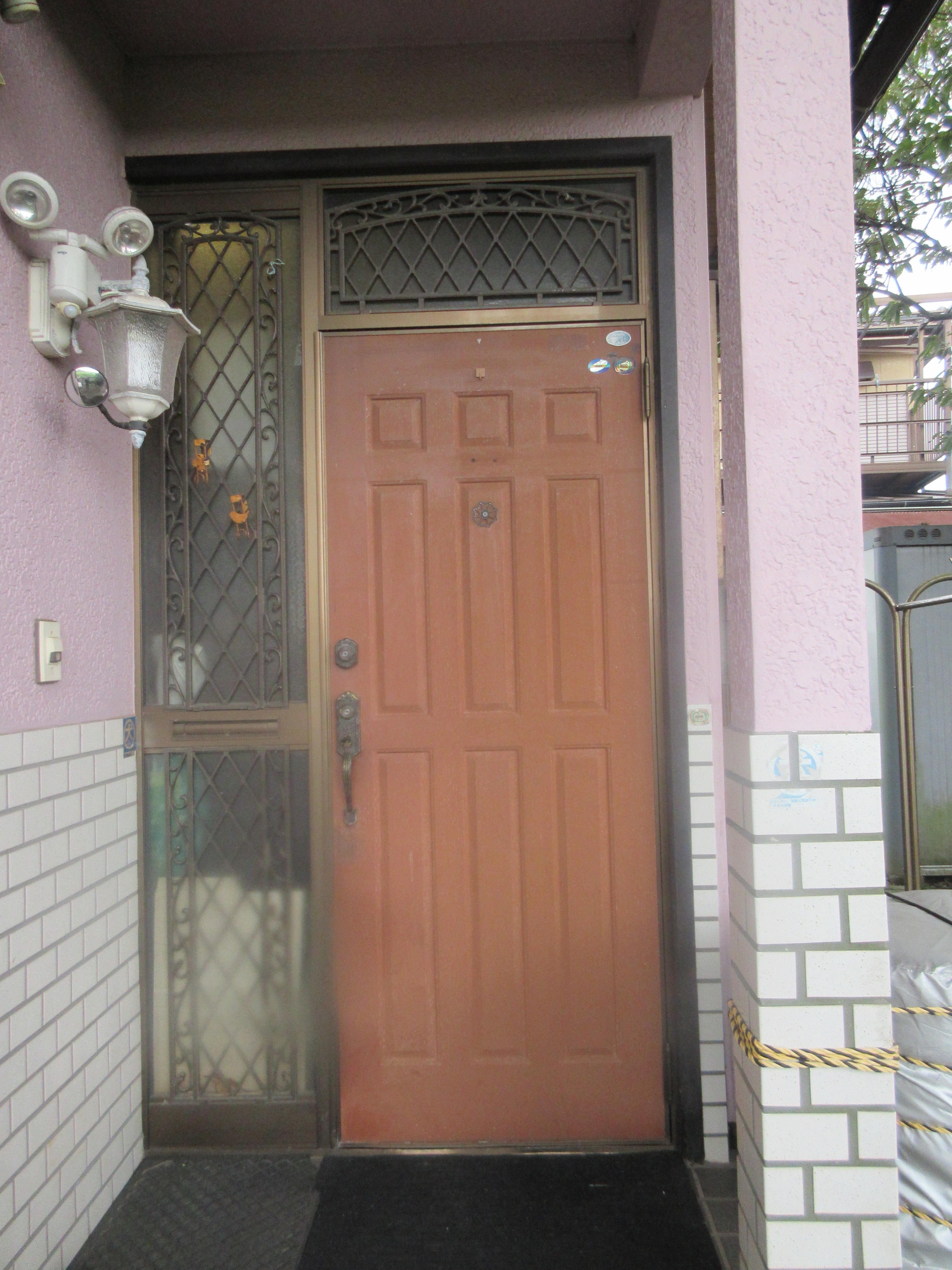 玄関内部が暗くドアの開閉がきつくなってきたことがお悩みのT様。 リシェントのアルミ仕様採風ドアに交換し、光と風も採り込める明るい玄関にリフォームしました。
