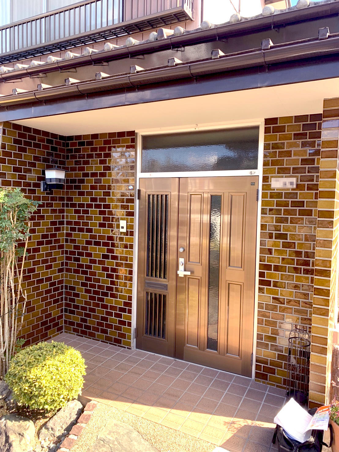 以前から弊社にご依頼をくださるU様。玄関を交換したいとお考えのタイミングで弊社からのダイレクトメールが届き、ご決断されたとご連絡をいただきました。現在は欄間にガラスがあり、日当たりが良く光が入りすぎて困っていたそうです。