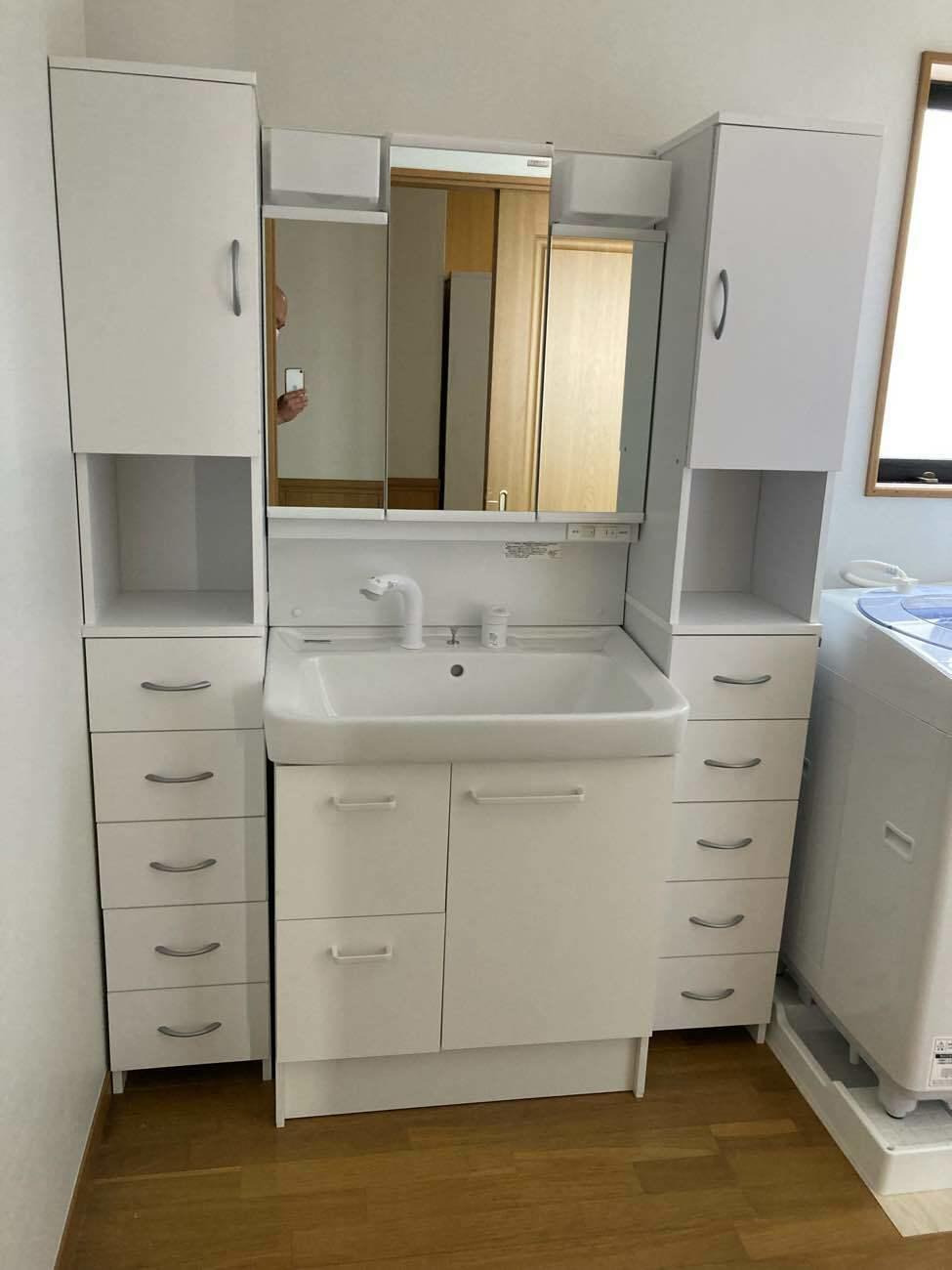 浴室の折戸が壊れてしまい、閉められなくなってしまったので、これを機にユニットバスと洗面化粧台を交換しました。 断熱性能も上がり、温かい浴槽にご満足して頂けました。