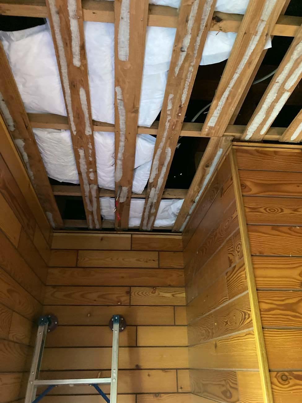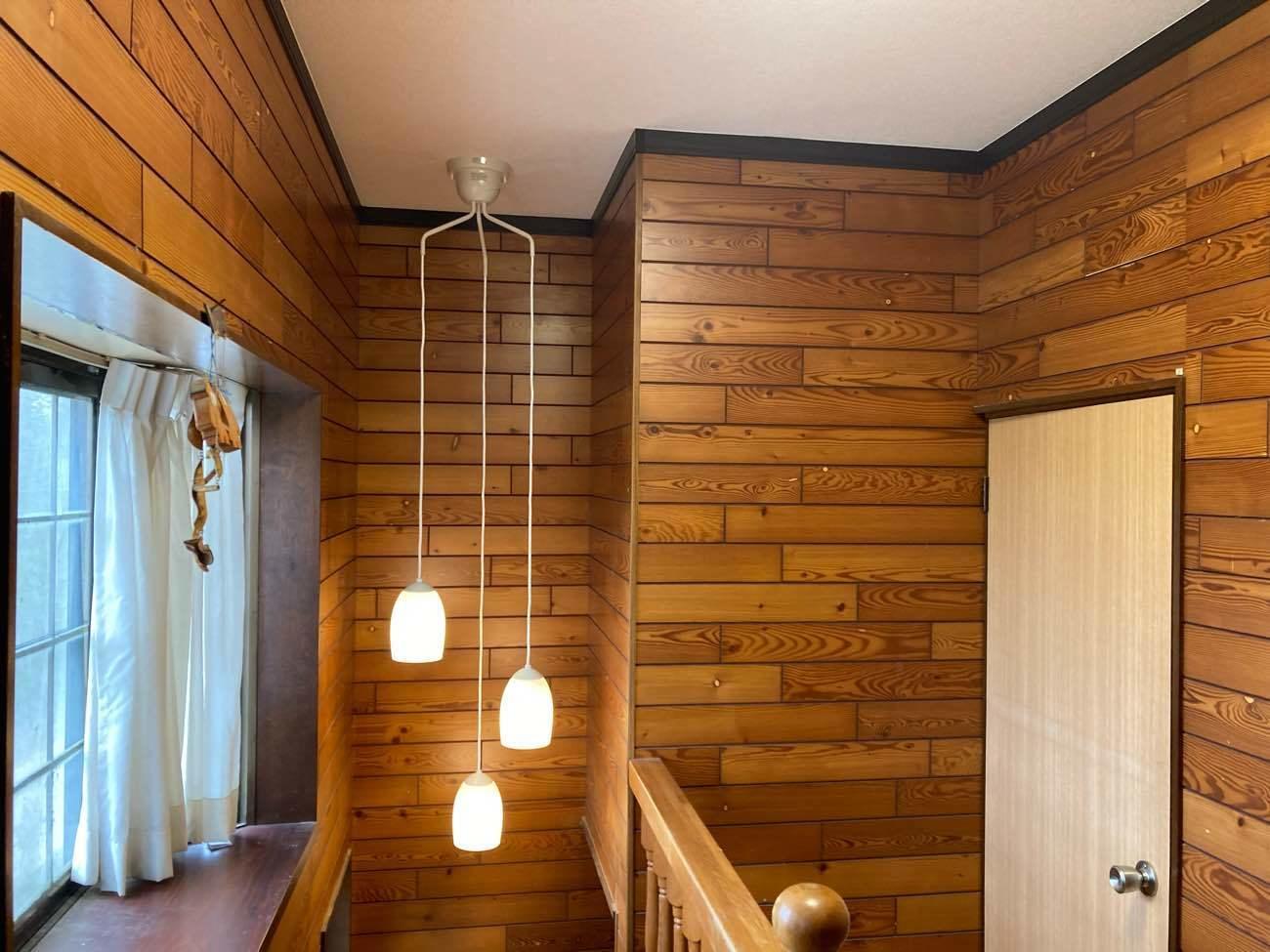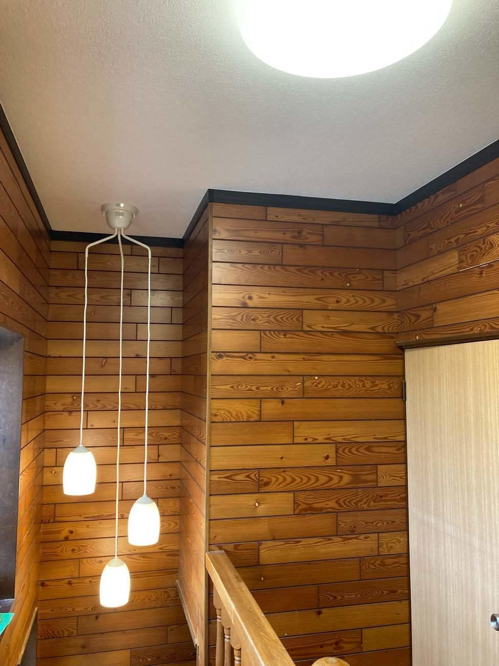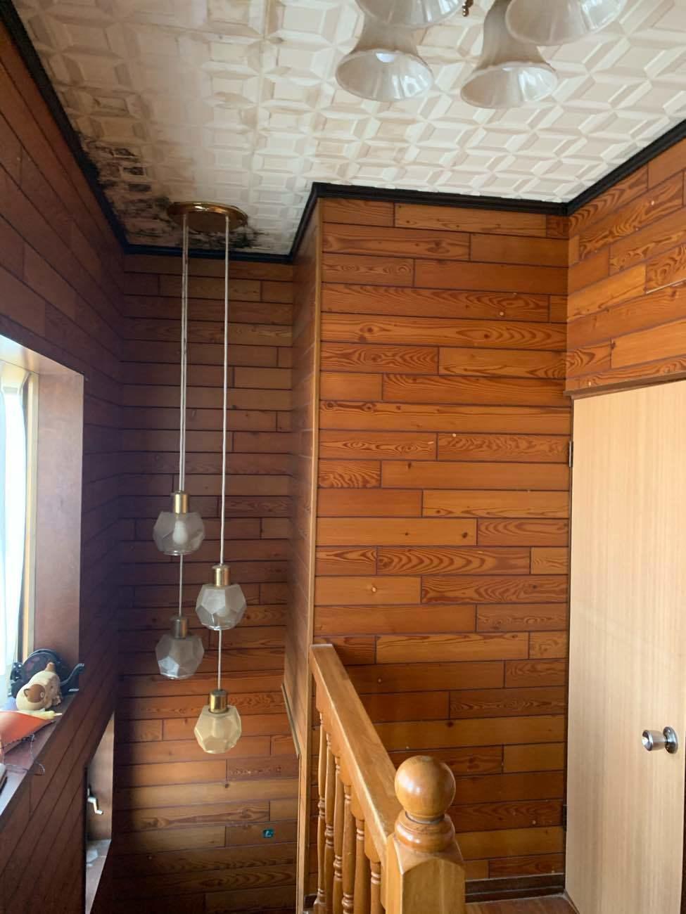2019年の台風により、屋根からの雨漏れで天井にシミが出来てしまい、吹き抜け灯も雨水にあたってしまったのでリフォームをしたいとご依頼をいただきました。