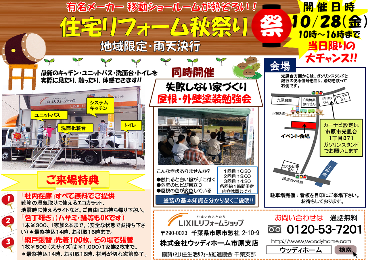 ウッディホーム市原店では来る10/28(金)市原市光風台にて「住宅リフォーム秋祭り」を開催いたします!