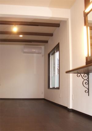 元和室部分の天井には付け梁をして雰囲気作りに色を添えています。アクセントにもなり、とってもバリ的空間で癒しも2倍?!