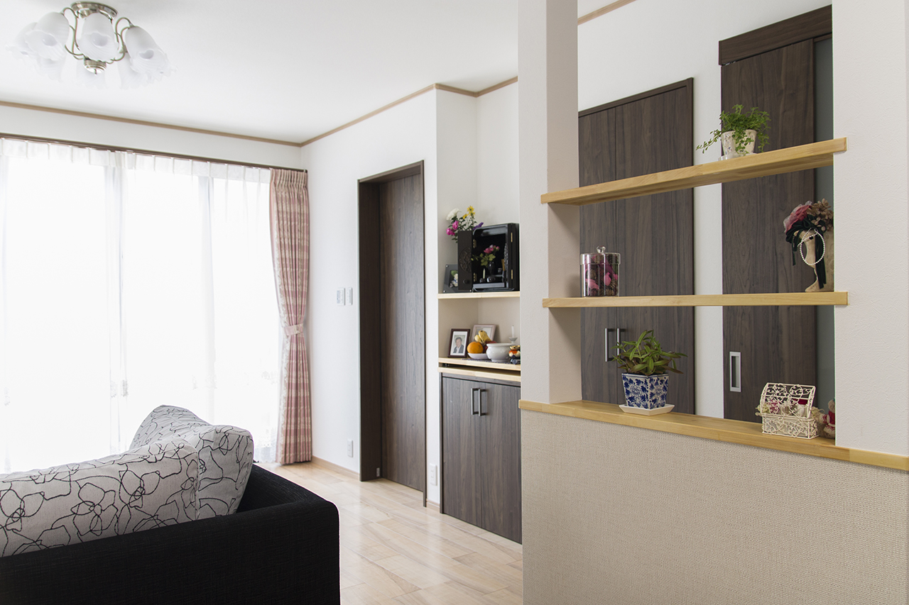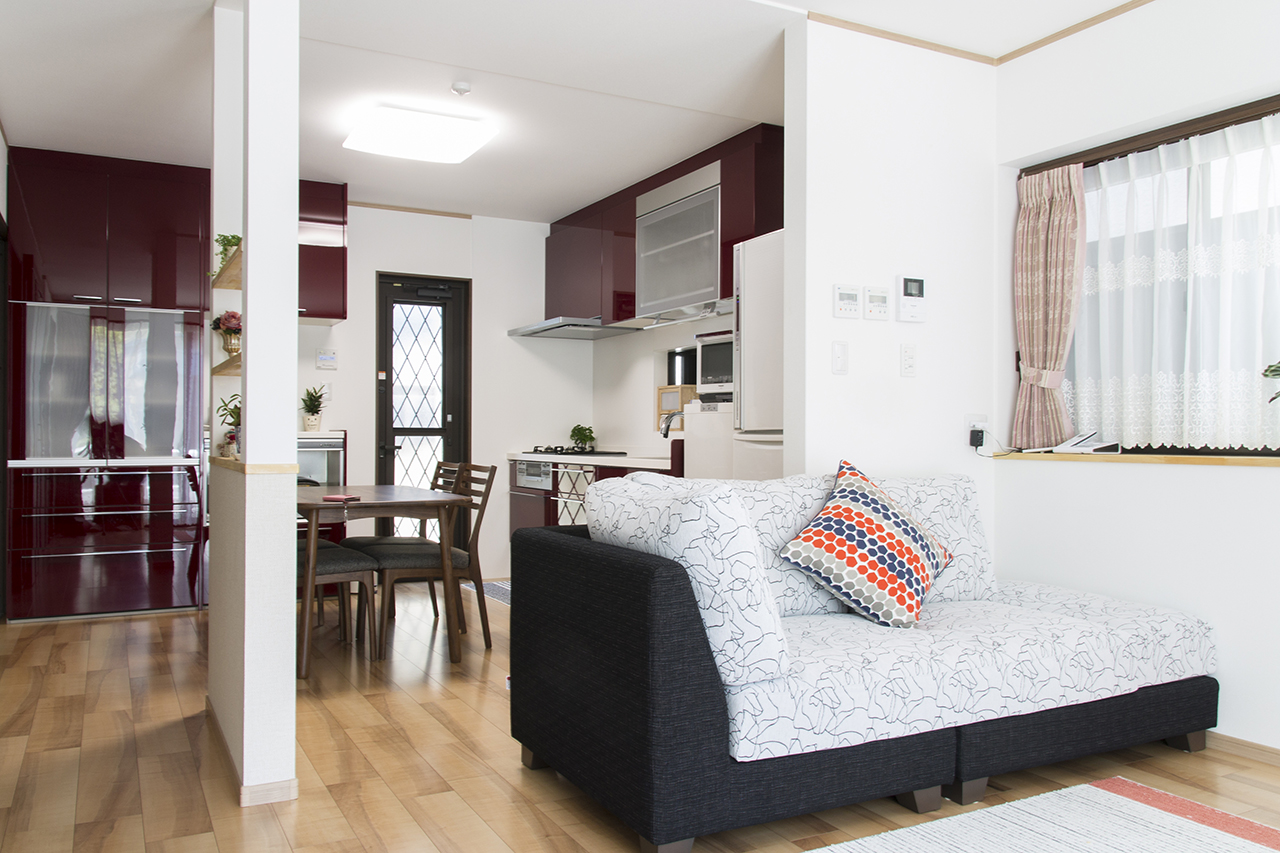 LDKとしたことで食事を運ぶ手間がなくなりました。勝手口を設けたことで、今まで遮られていた風が通り抜けるようになり快適に過ごせる様にもなりました。食器棚も充実していて食器もすべて収納できます。