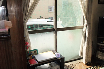 かつて8帖の和室だった部屋がDKとつながり、高さ1m80cmだった窓を2m20cmのサーモスサッシに交換したことで、より明るく広く、断熱材も入ったことで暖かくもなりました。