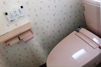 トイレは可愛らしい、ピンク色の節水トイレに変わりました。2連のペーパーホルダーはスマホも置けて重宝します!