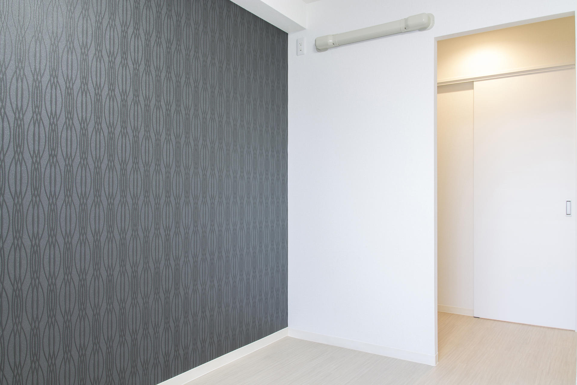 収納付きの普通の洋室でしたが、リビングとのウォークスルーのクローゼットにして、北側の洋室に空気と光を取り込みます。また、アクセントクロスが落ち着いた寝室空間にしてくれます。