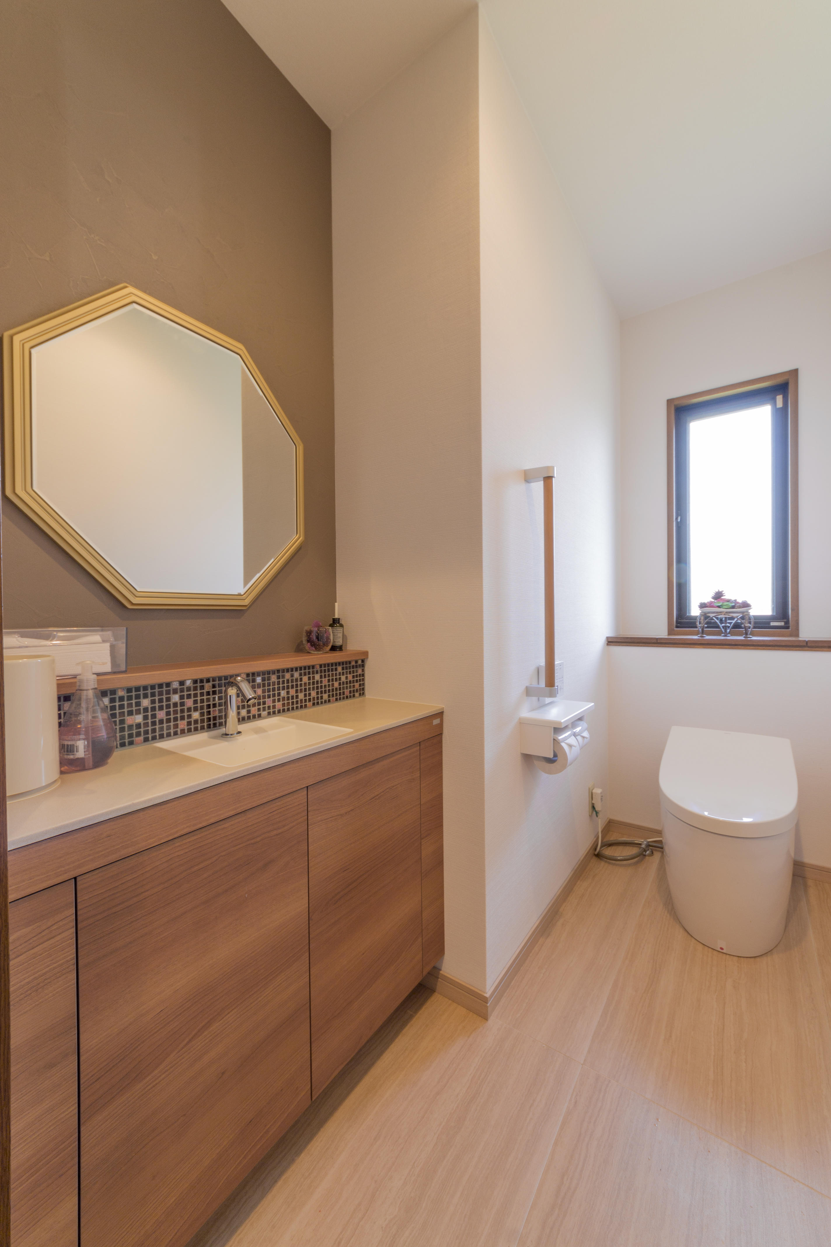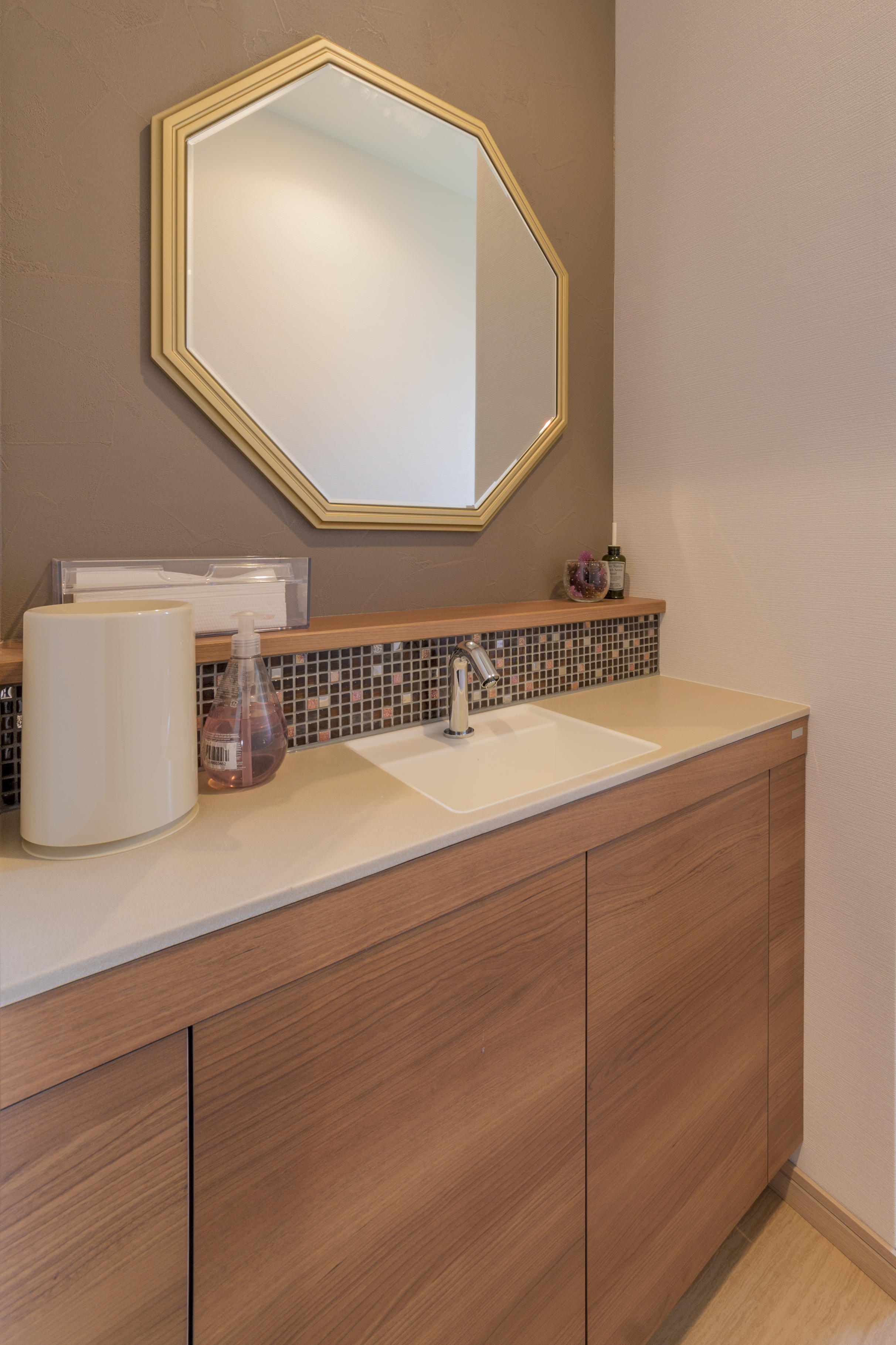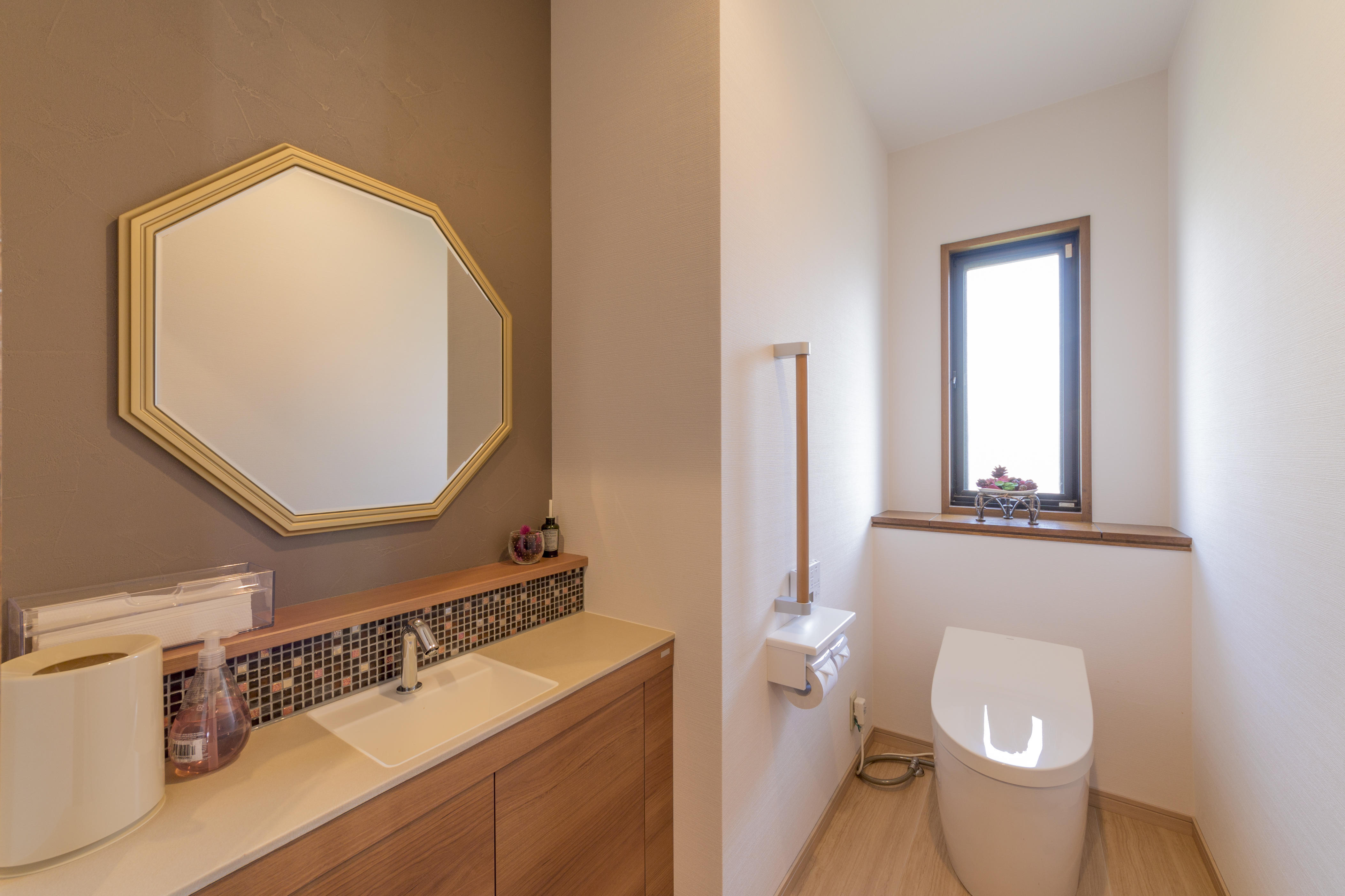 最後にお客様がお選びしたトイレ手洗いに飾った鏡のセンスが良く、最後のアクセントになり素敵な空間になりました。ご親戚ご友人がお越しの際にも自慢できる空間になったと思います。