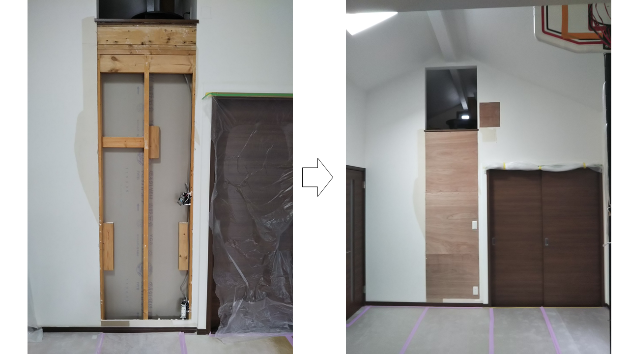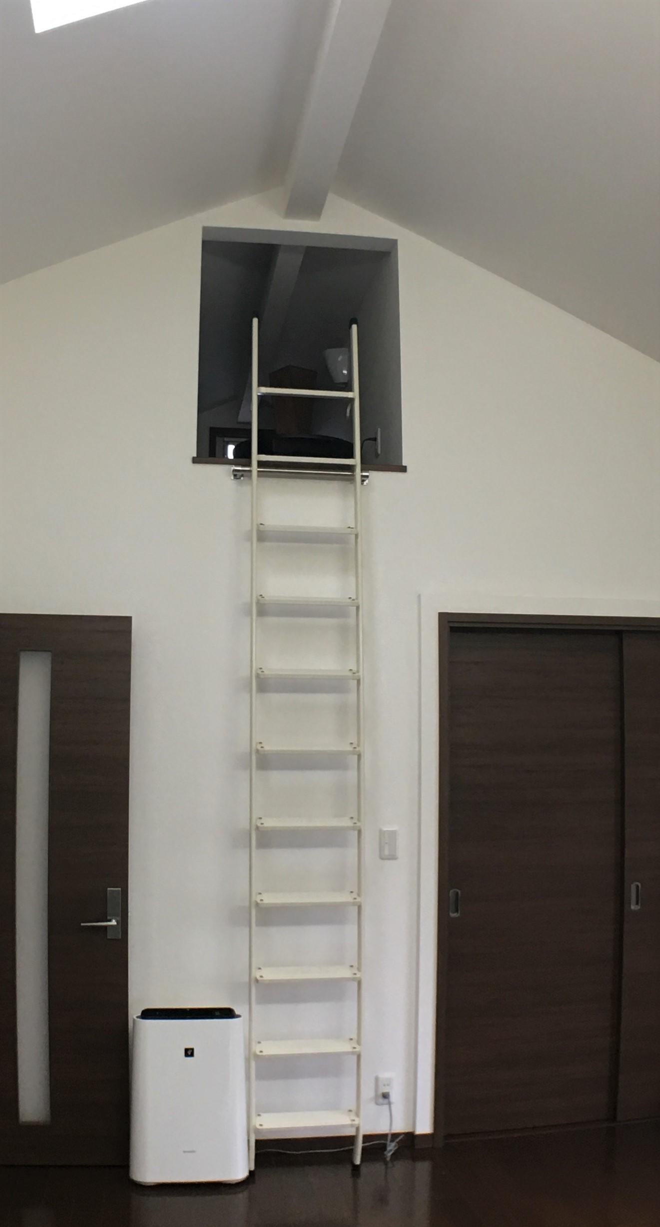 2階のリビングにあるロフトへのハシゴがパイプに引っ掛けるタイプで使う時に取り出すのが重く、使う頻度が高かったためパイプにかけたままにしていると通るときに邪魔なのでどうにか解消できないかというご要望でした。オシャレも兼ねてバータイプのハシゴにしてインテリアもお洒落になりました!ご家族様全員で楽しめる空間になりました。