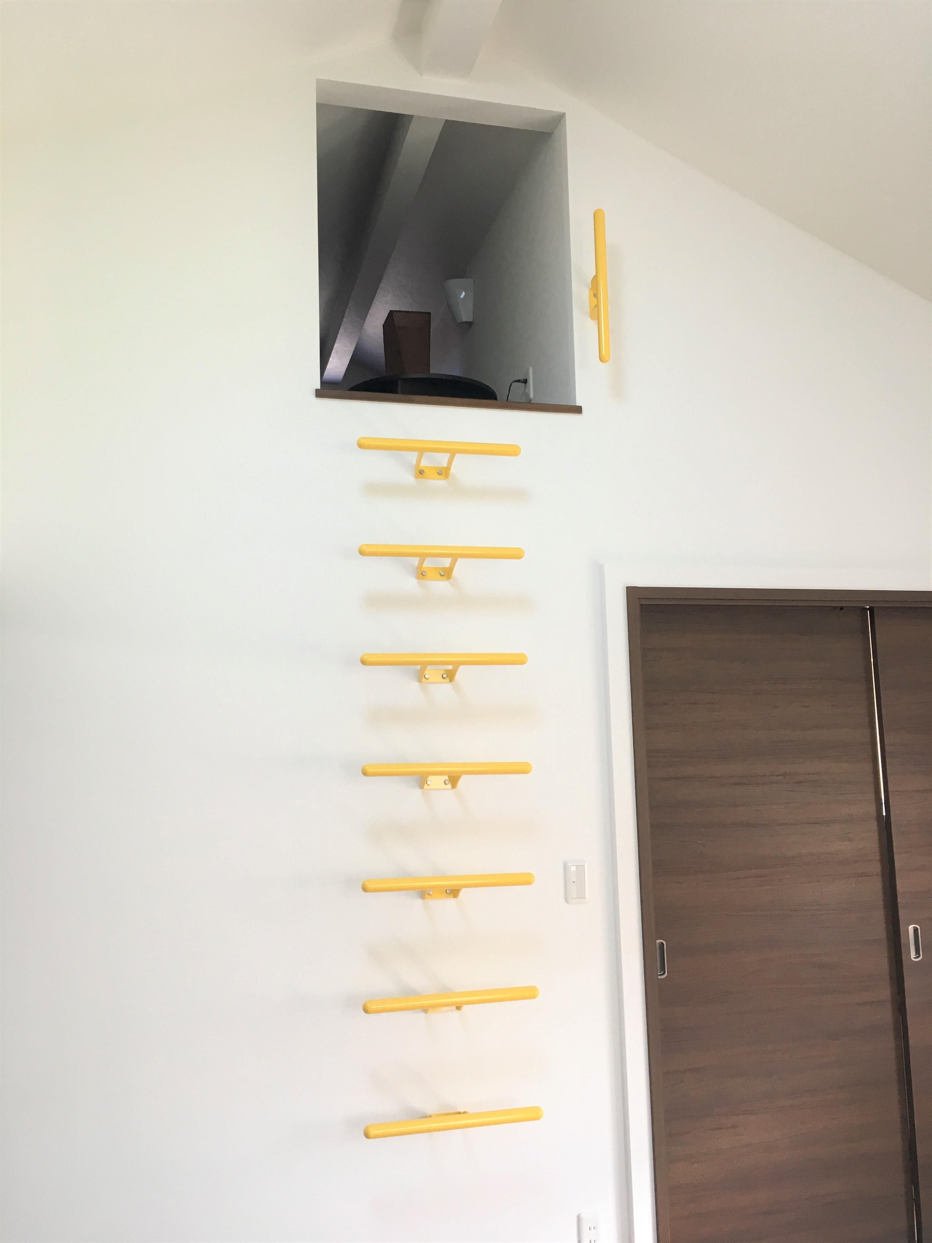 この度はご依頼いただき、ありがとうございました。パイプにかけるハシゴは使う時に取り出すのが重く、使う頻度が高かったためパイプにかけたままにしていると通るときに邪魔なのでどうにか解消できないかというご要望でした。4色の中からみんなで選んだ黄色のハシゴが出来ました!二人のお子様にも喜んでいただき、インテリアも素敵になりました!みんなで選んだ黄色のハシゴ、気に入って頂けて嬉しいです。最初にご主人様の支えもありましたが、息子様が昇るときは奥様とドキドキしながら見ていましたがすんなり上がってホッとしました。ご提案に時間がかかり申し訳なかったのですが、喜んでいただき嬉しく思います。