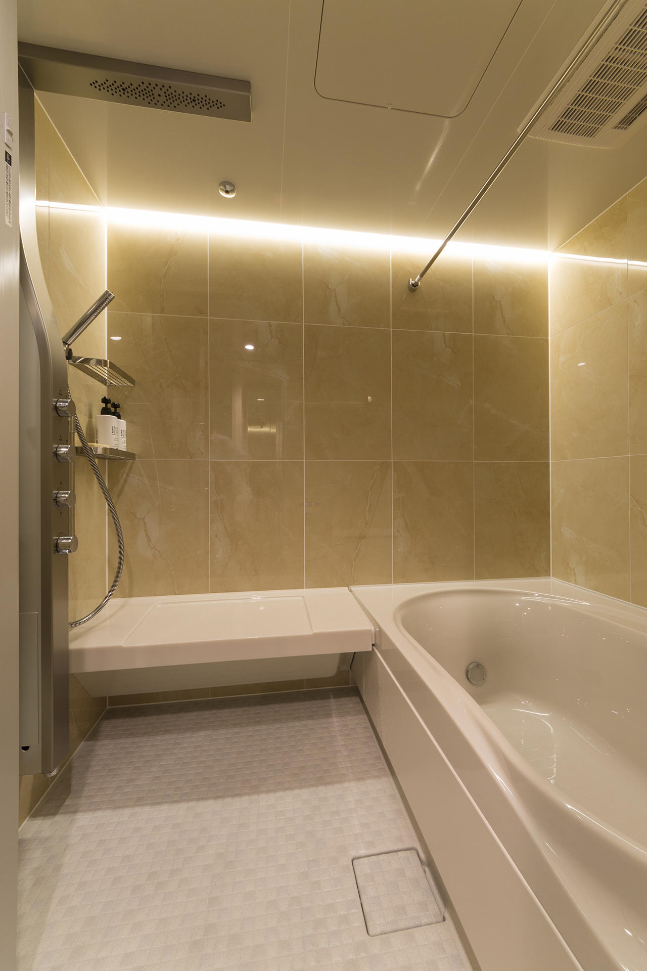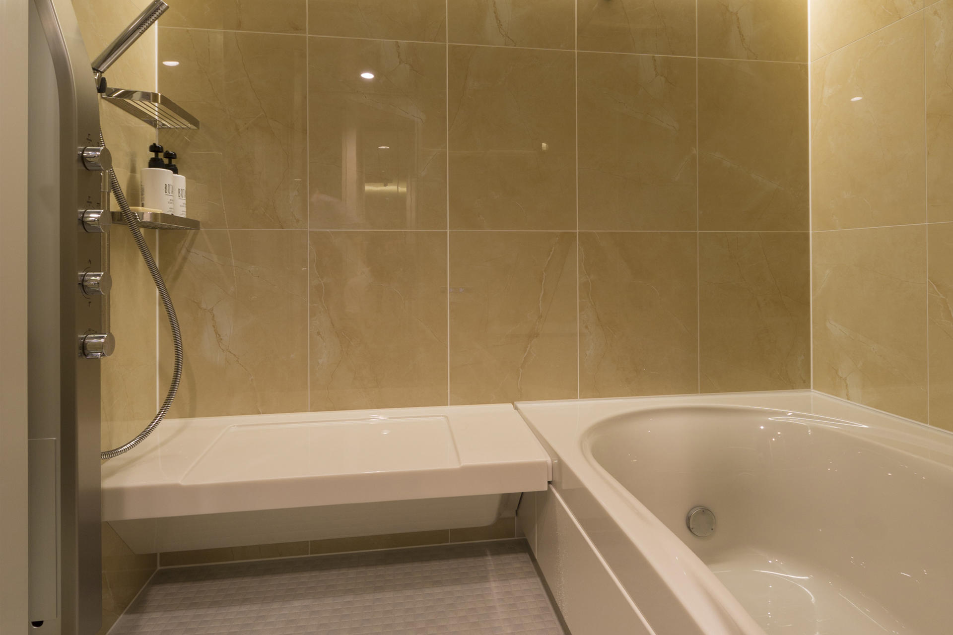 お仕事がお忙しいお施主様。単に設備の入れ替えをするのではなく、お風呂で日々の疲れを取っていただけるスパのようなくつろぎ空間にこだわり、ご提案を行いました。