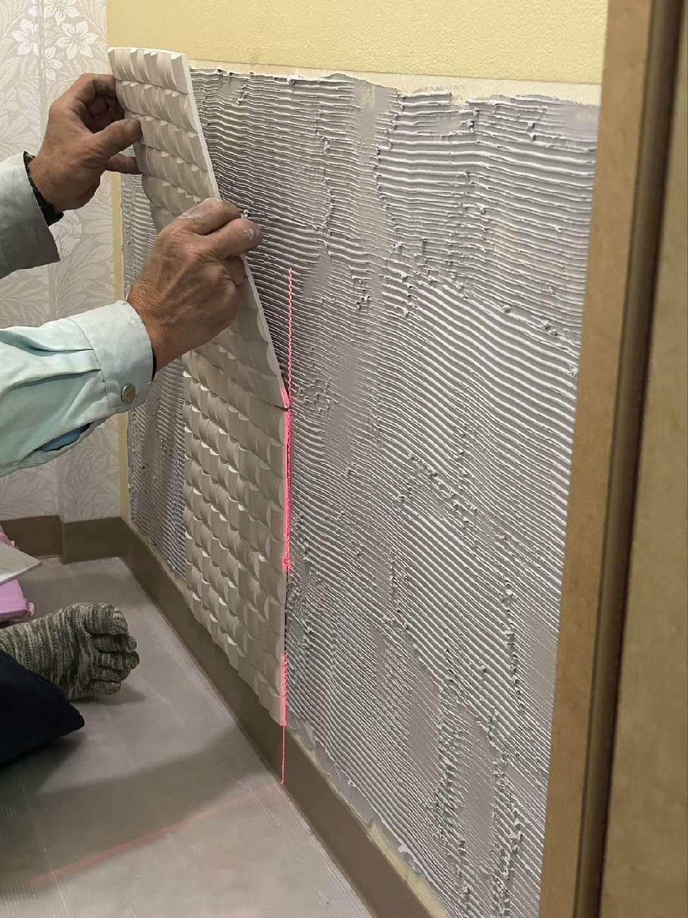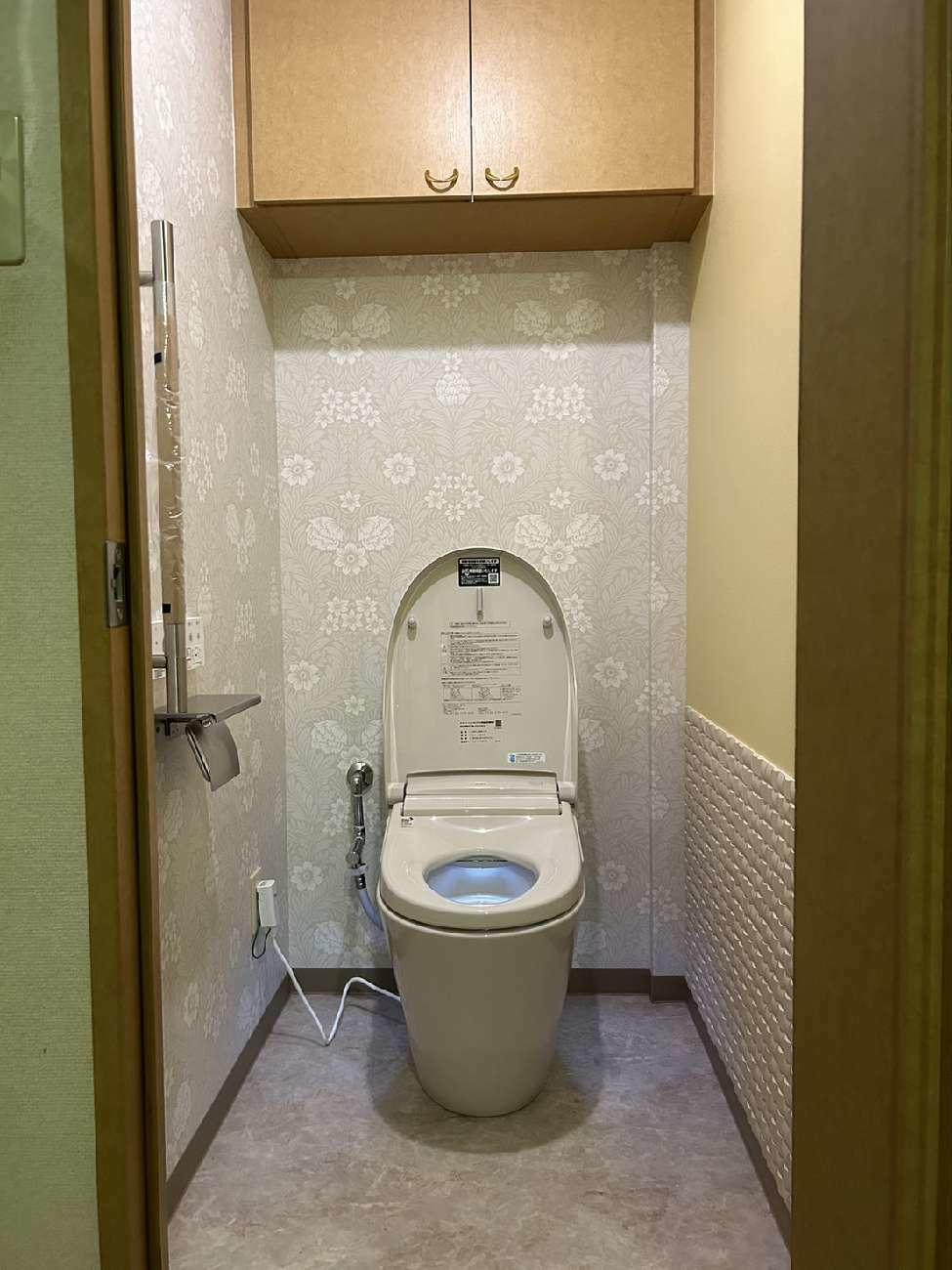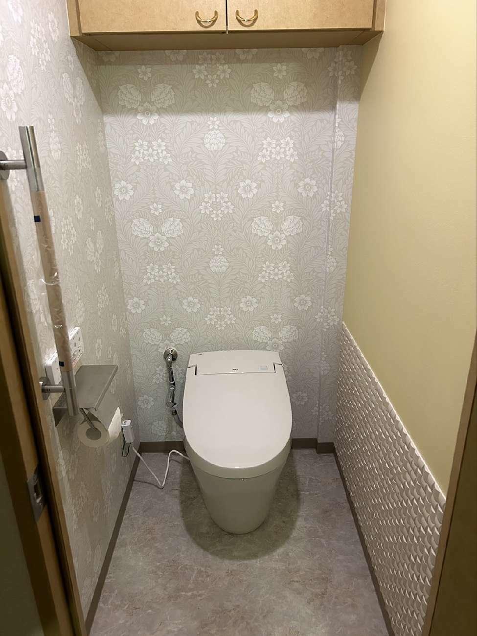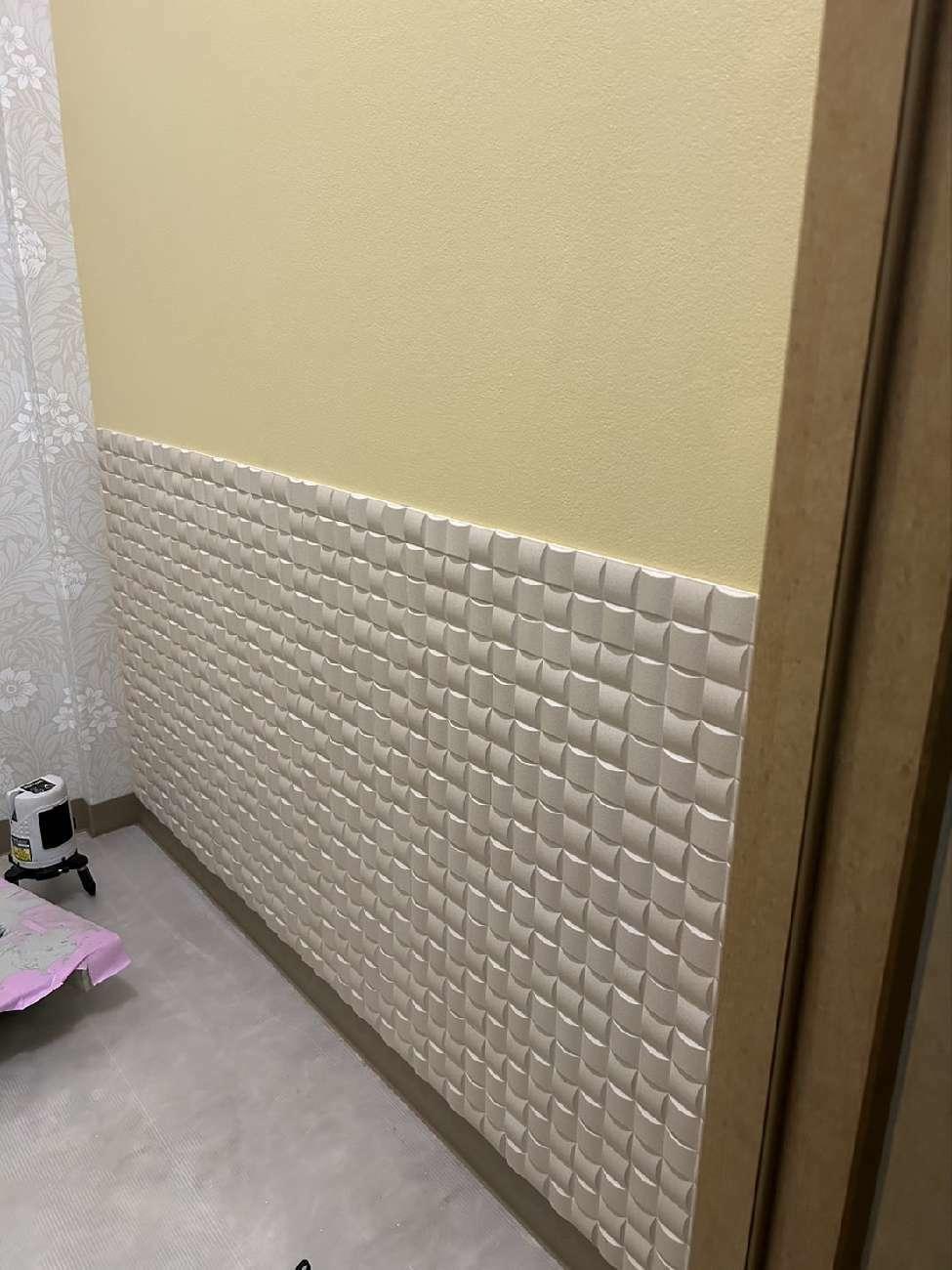 アクセントクロスとLIXIL調湿タイル『エコカラット』(右下部)を施し、お洒落でスッキリとした空間を演出いたしました。