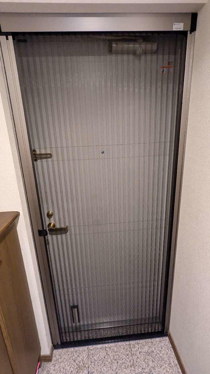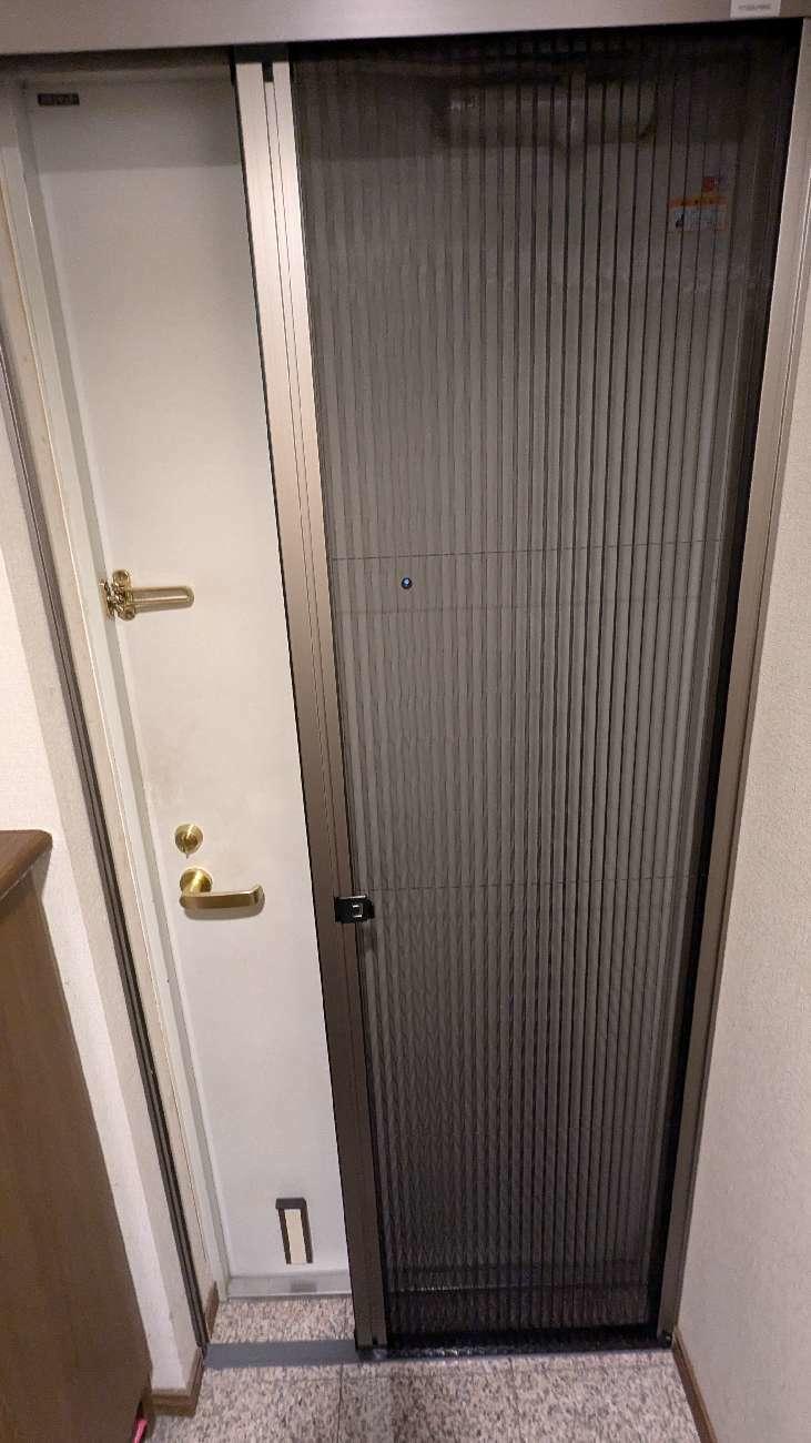玄関にキャタピラ網戸を設置する事により、自然な風を取り入れる事が出来るようになりました。