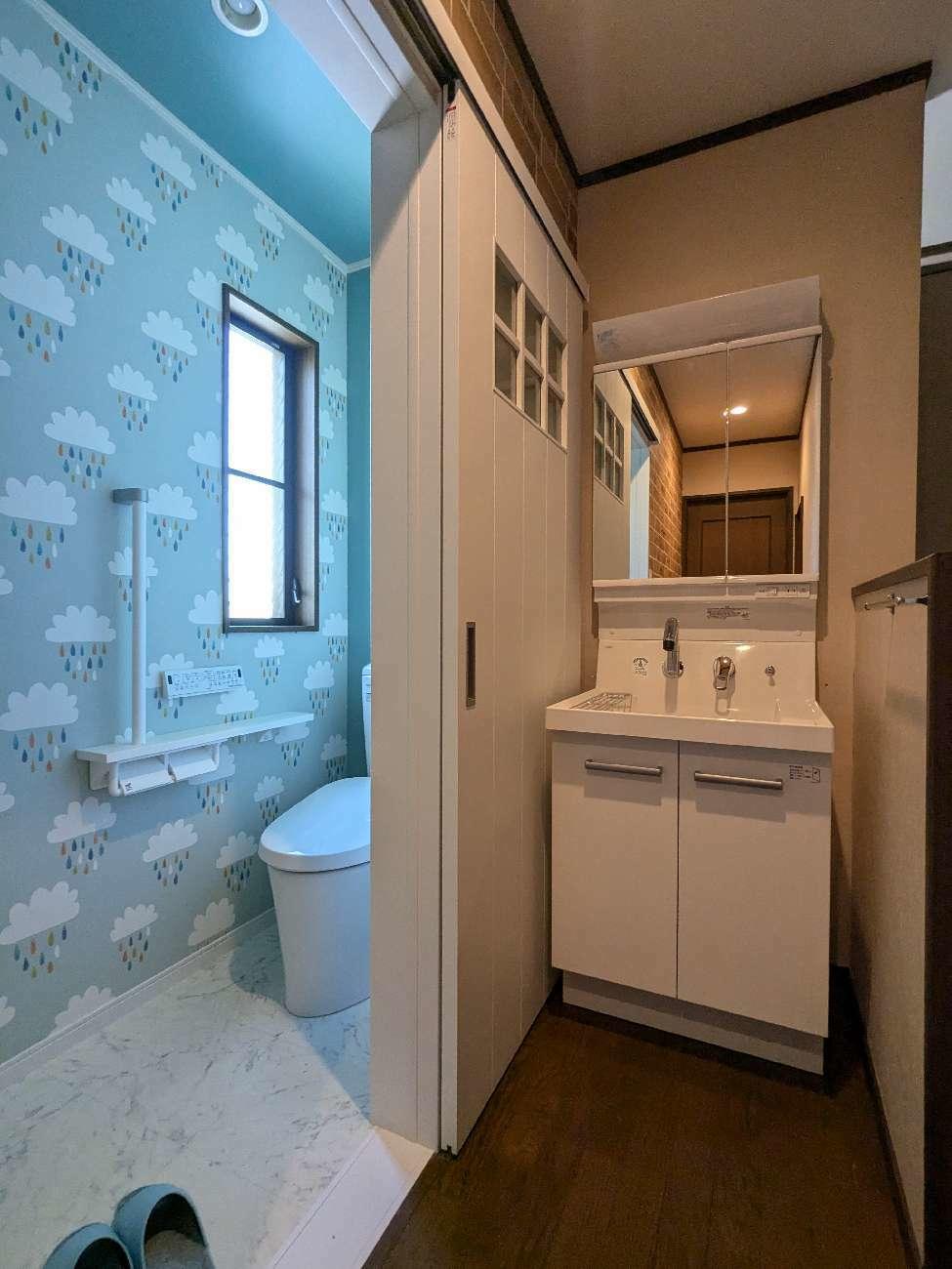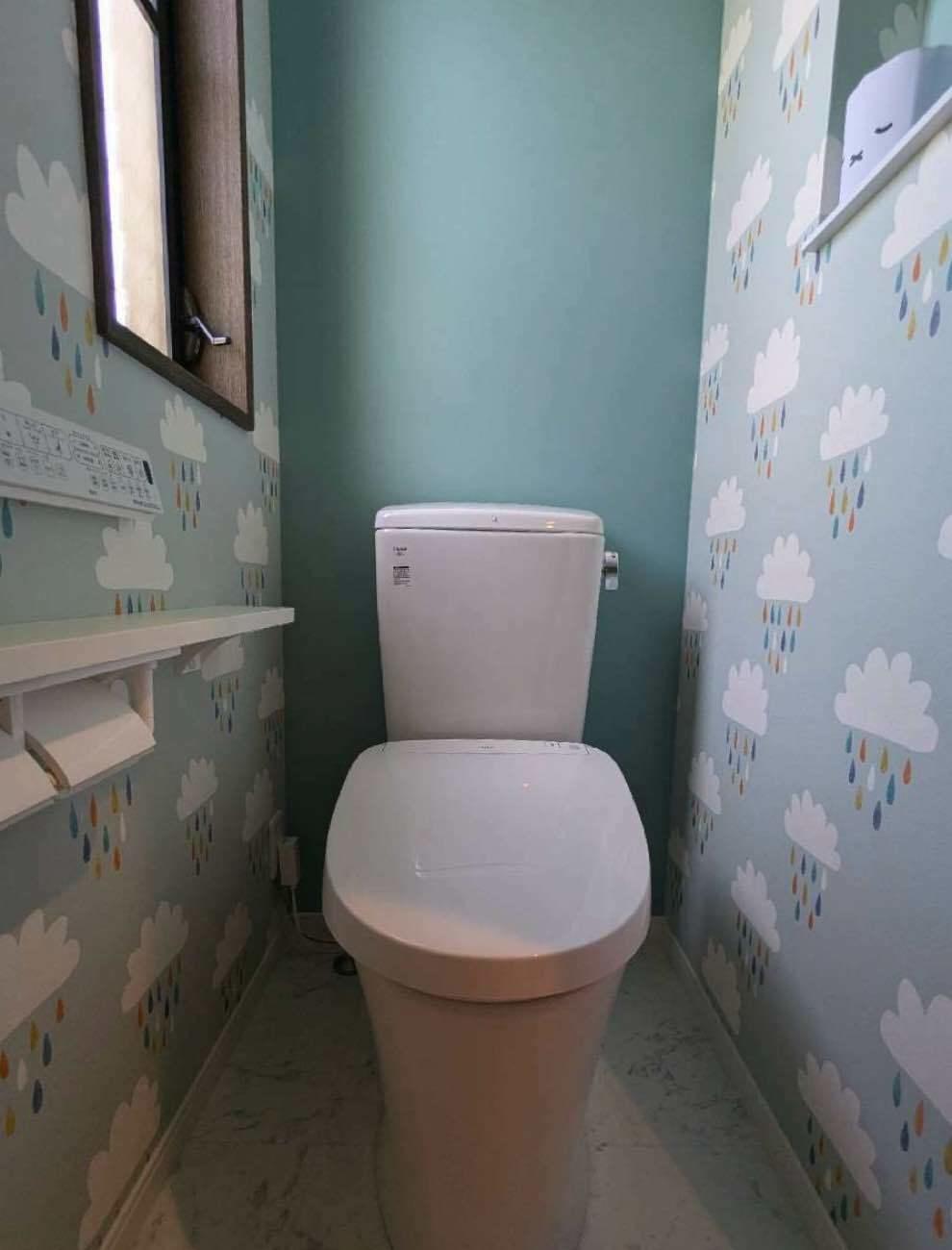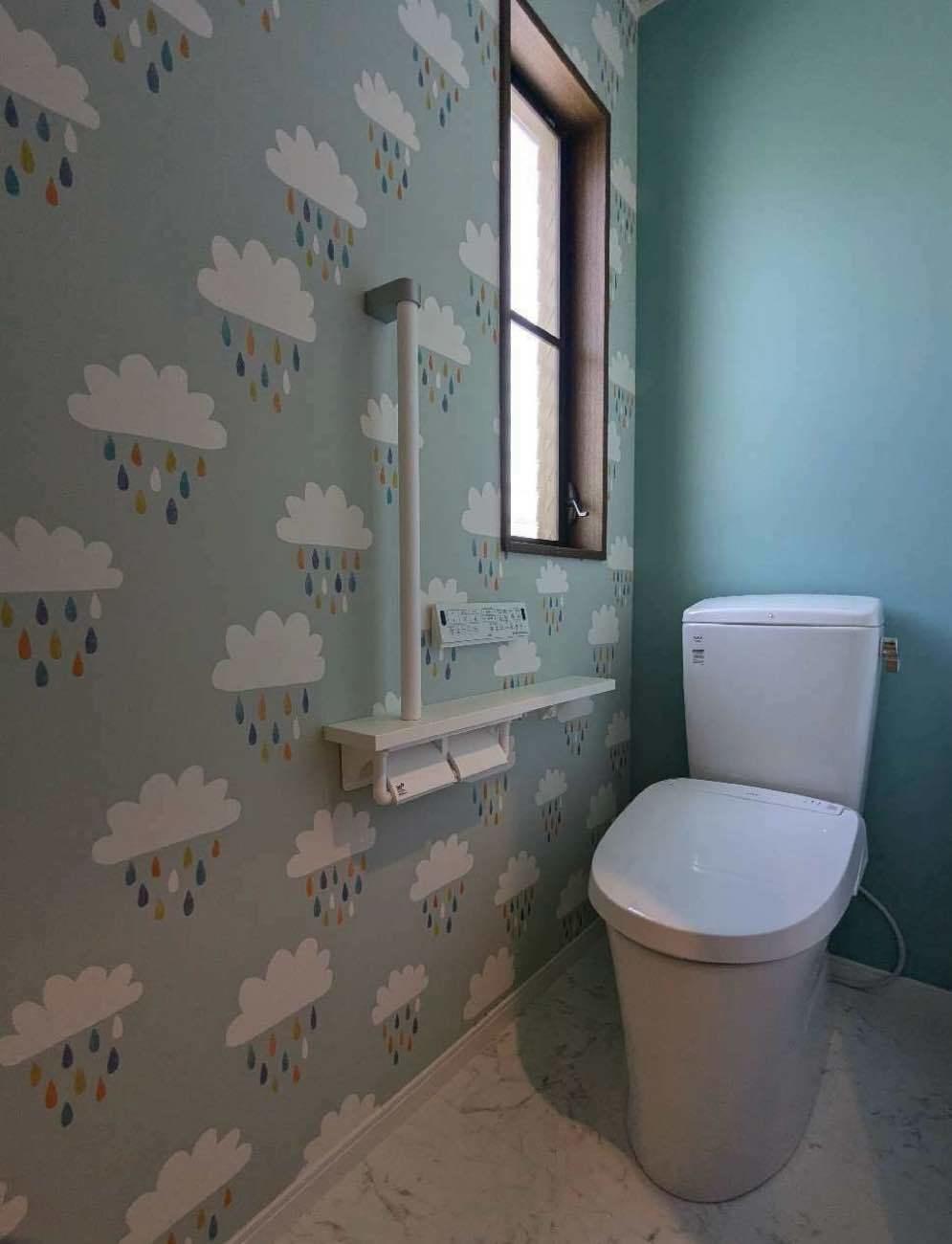 この度はお母様のためにと娘様が一生懸命考えてく下さり、私どもと一緒作り上げた空間です。 トイレ内のクロスお母様ご自身が選定されました。 ドアや廊下クロス、木巾木などもお色にこだわりメルヘンな空間ができました。 おトイレに行くのが楽しみになりますね。 バリアフリーでご家族も安心ですね。 この工事に携わることができて大変うれしく思っております。 いつまでも可愛く気分を上げるってとても大切だなと思いました。