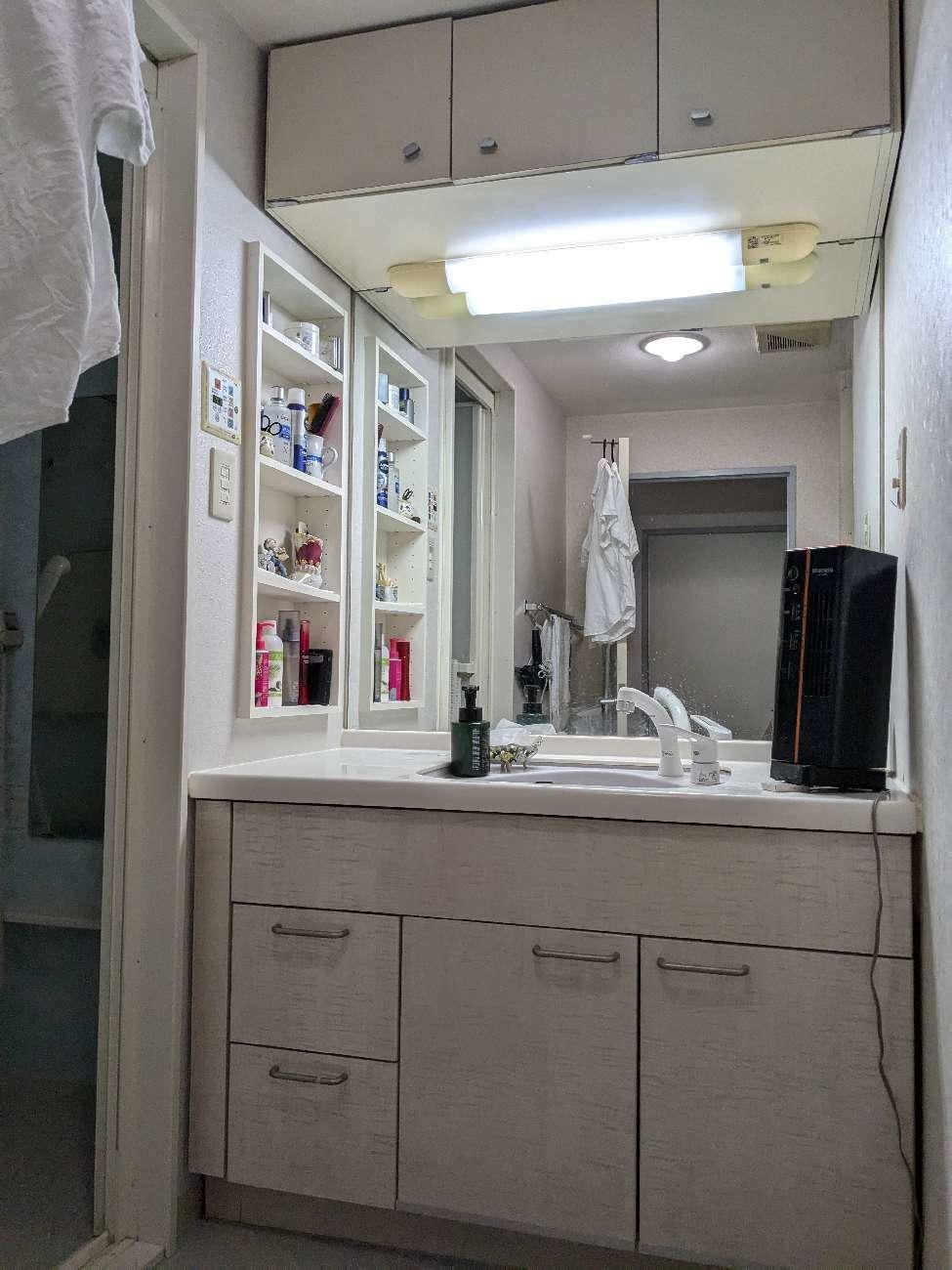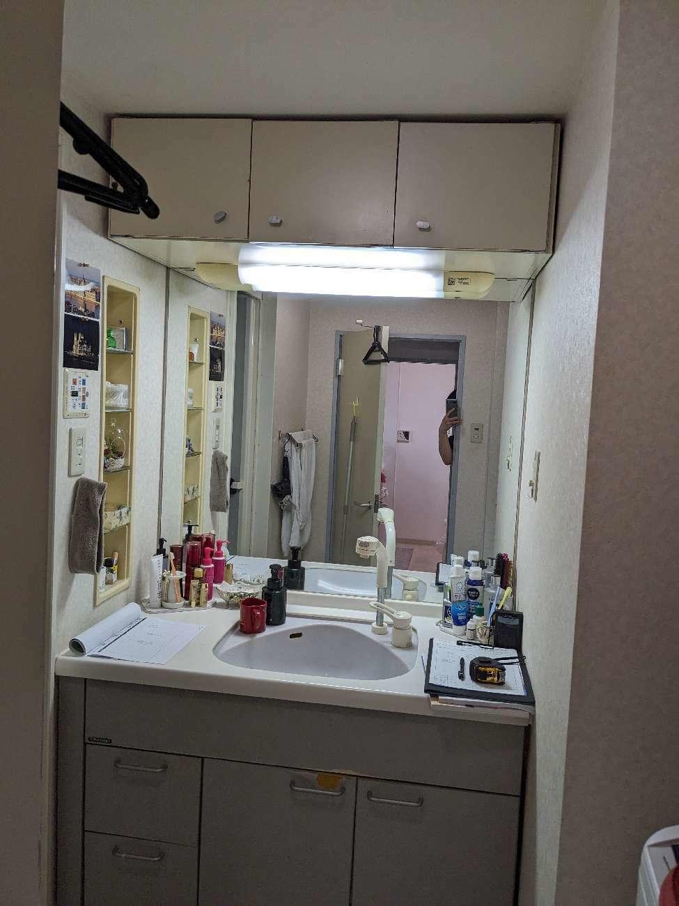 お打ち合わせをする中で、化粧台扉や水栓は変えたいけれど、本体はまだまだ使えるため、最小限の内容での工事となりました。