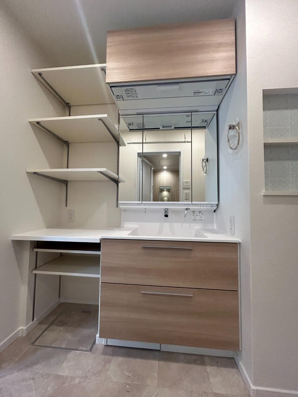お住まいになる中で、今までの化粧台カウンター幅は不要と思われたようです。