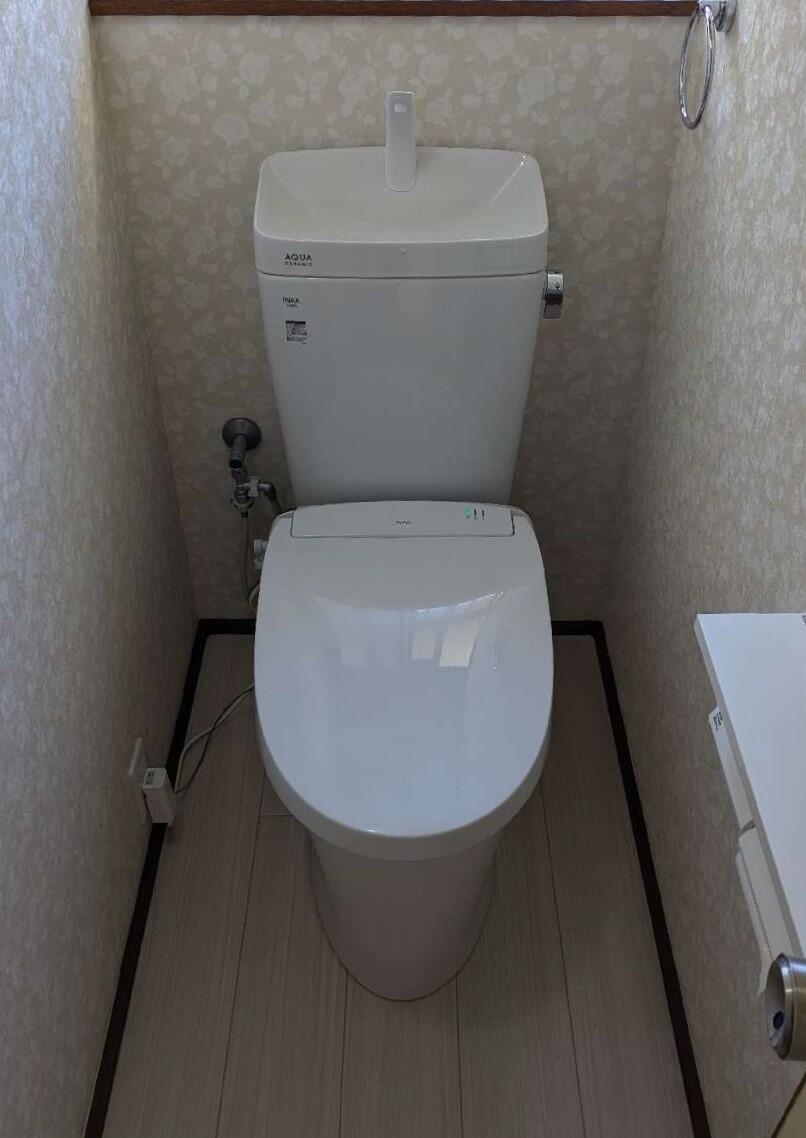 以前に2階のトイレを交換して快適になったので、流れが悪く何度も流さなくてはならなくなった1階のトイレもそろそろ交換しようかと思われた際、弊社がご近隣の内装工事をさせていただくにあたり、ご挨拶にお伺いしましたところ、ご相談をいただきました。