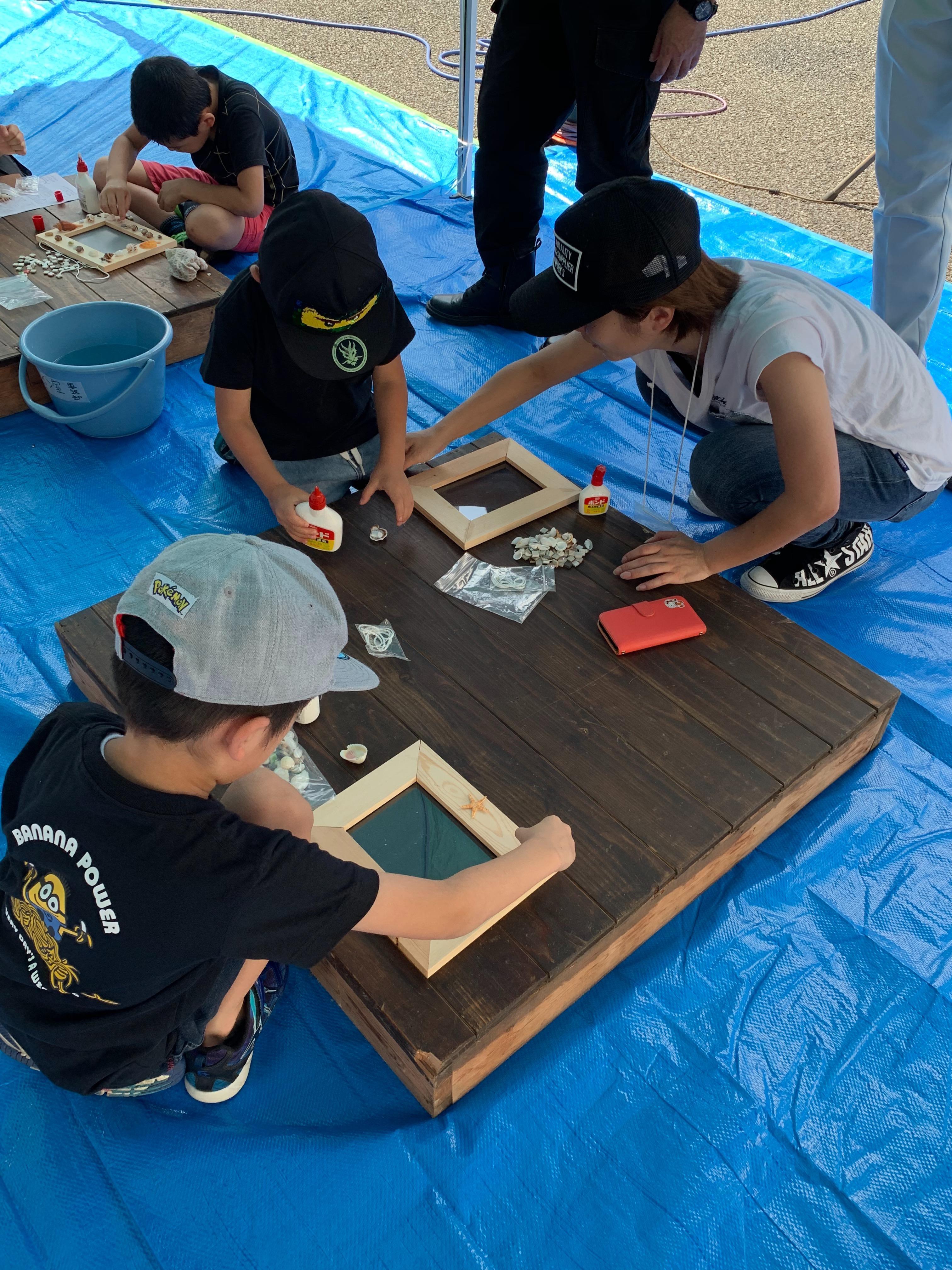 最後はセンスが光る貝殻とタイルを思い思いに貼っていきます♪