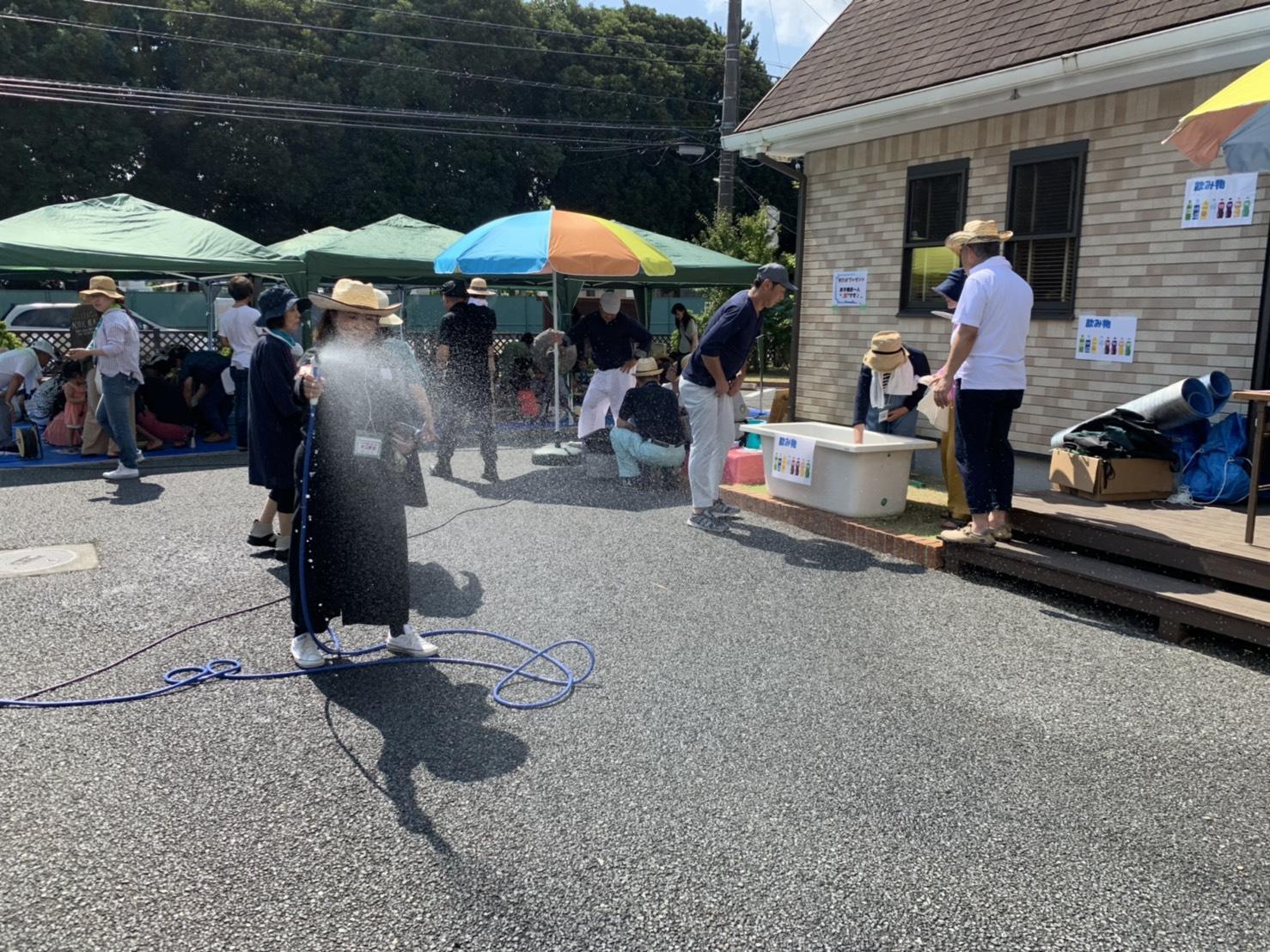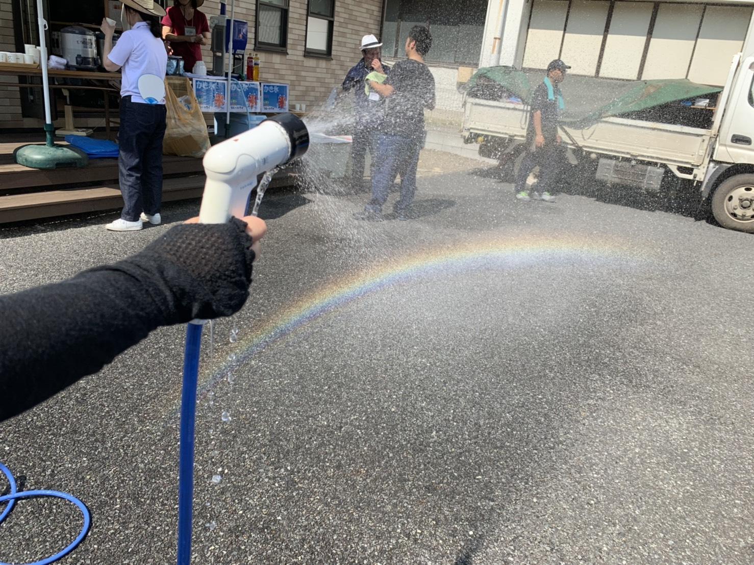 炎天下でしたので、少しでも温度を下げるためにシャワーで地面も冷やしていきます。![]()