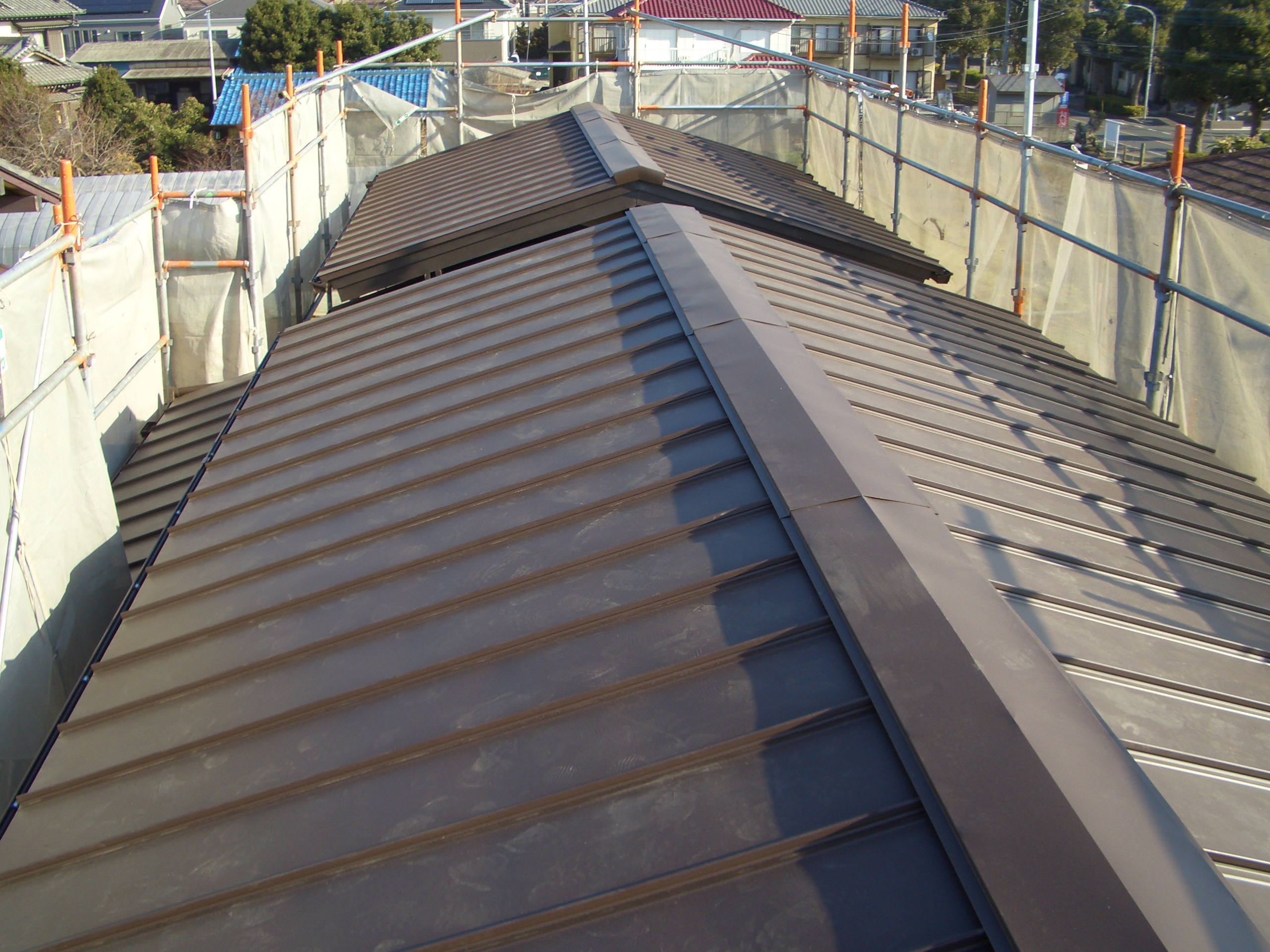 (松戸市リフォ-ム)屋根カバ-工法、破風板金、雨樋取替工事