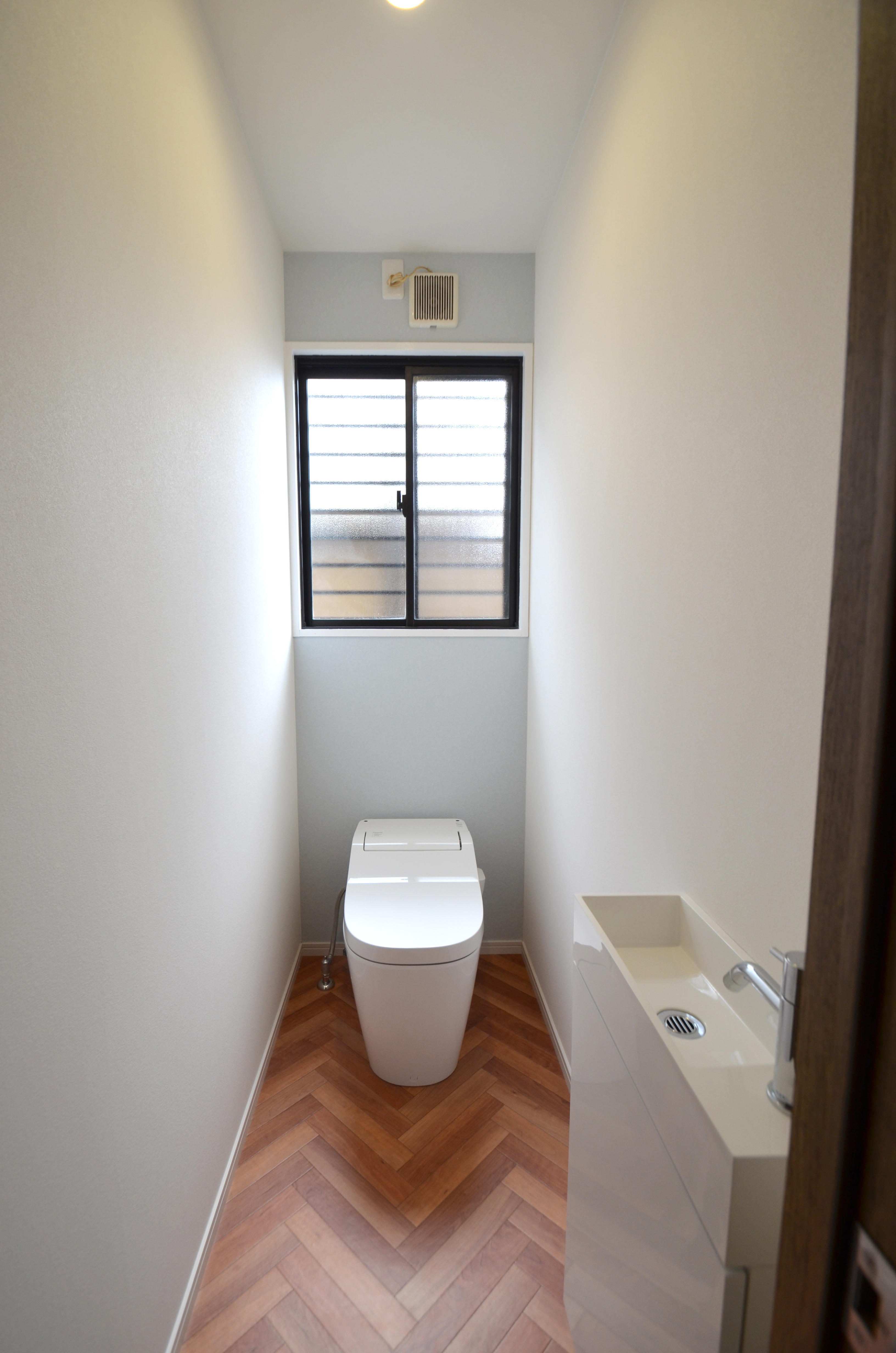 床をフロアタイルへ張替えし、お手入れが楽なトイレへ。