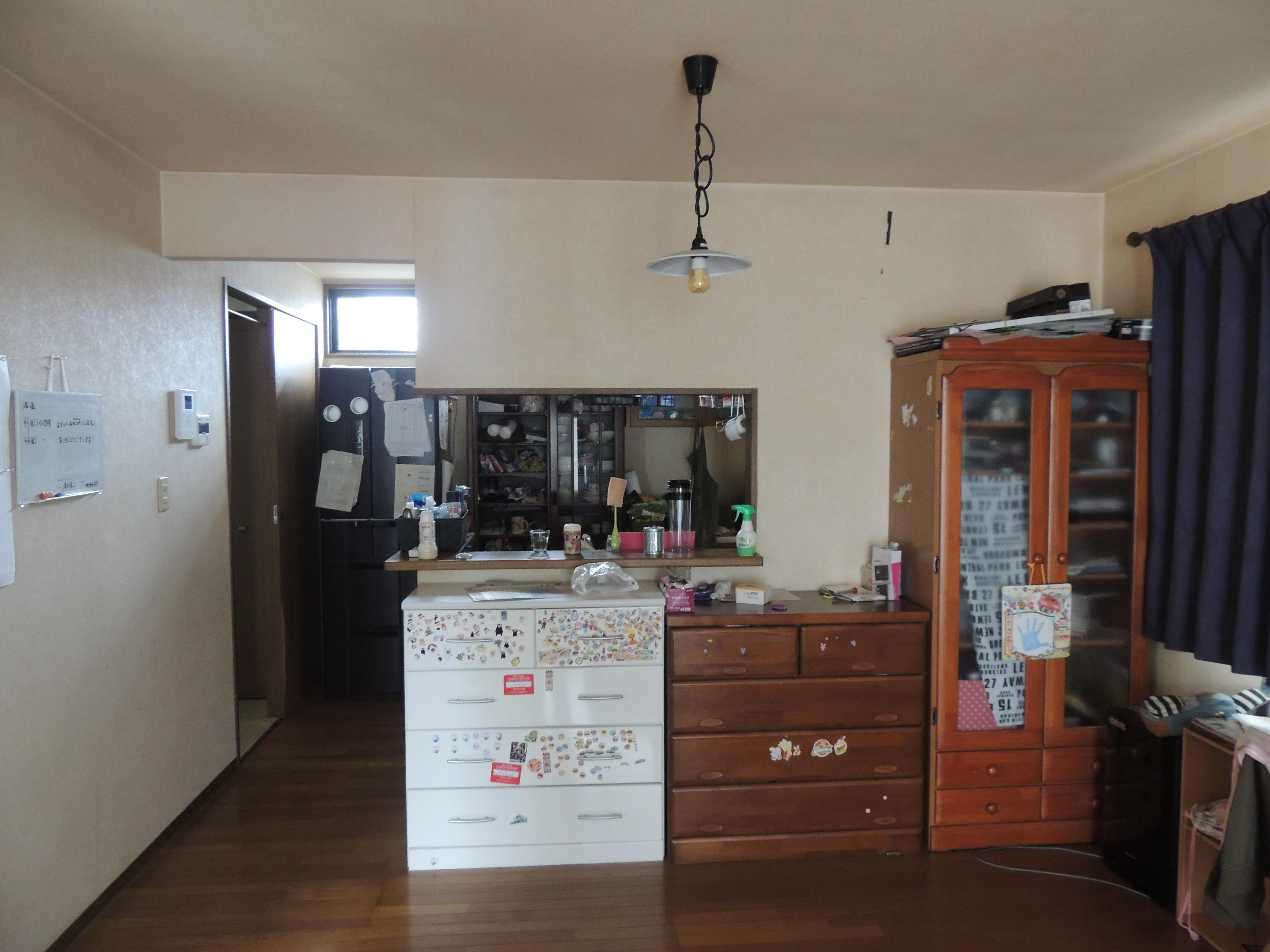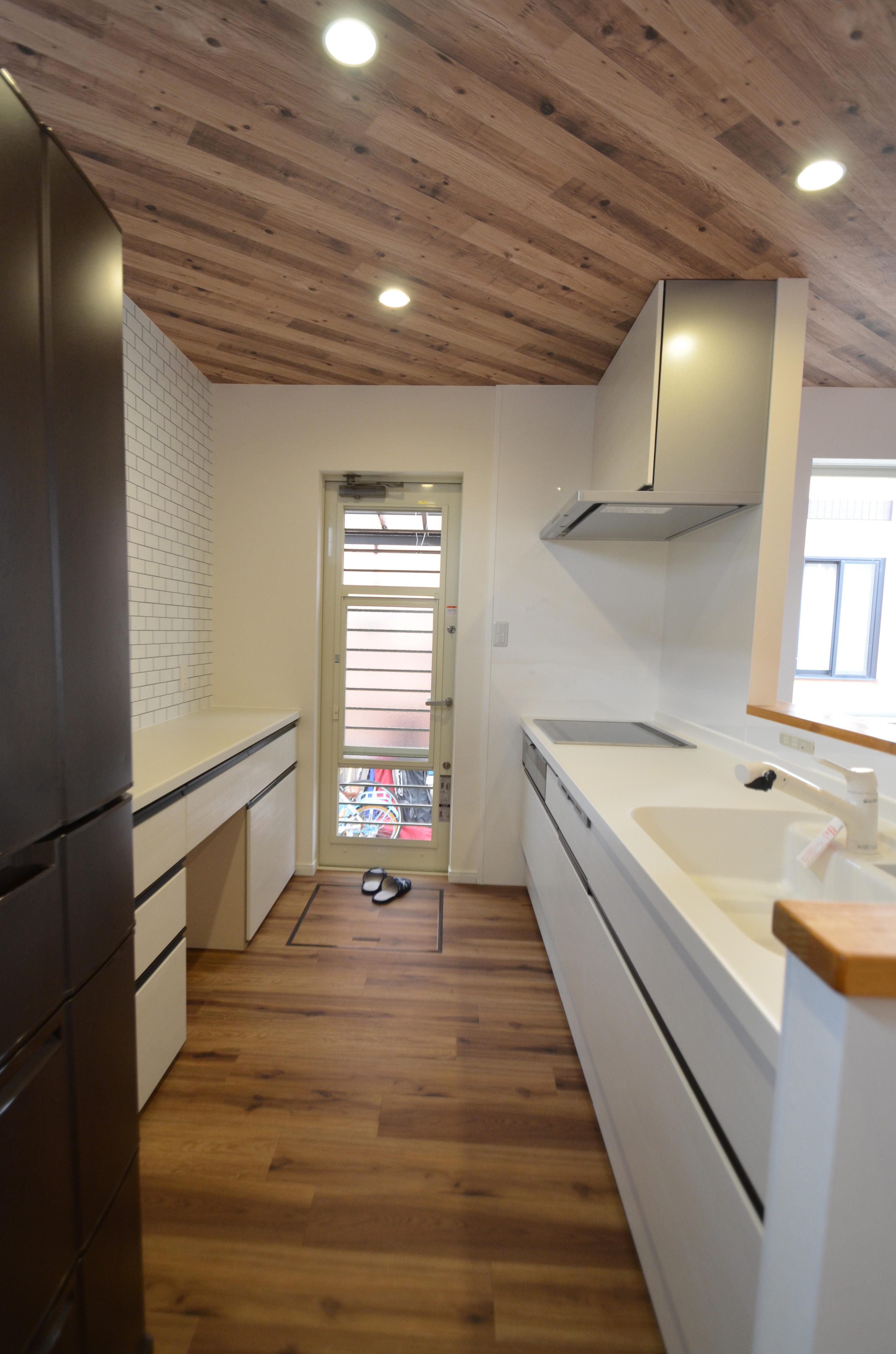 大収納のキッチン・キッチン収納へ取替え、清潔感のある白へ統一。
