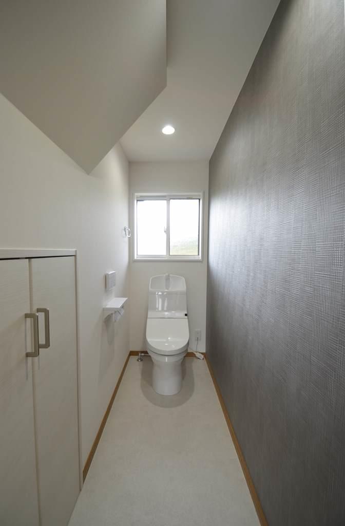 以前は家の端っこにあった暗くて不衛生だった汲み取り式のトイレを、LDKと客間の間に配置。今回の工事で汲み取り式のシステムを浄化槽システムへ一変。階段下のスペースを利用して、小物類を置くスペースも確保し、使い易く清潔なトイレを作りました。