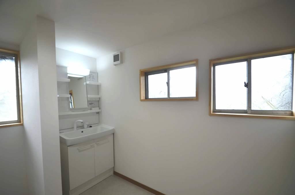 以前はなかった洗面脱衣室を新たに新設。浴室と共にキッチンのすぐ横に配置することにより、LDKからのアクセスが非常に簡単になりました。収納たっぷりの洗面化粧台と洗濯機を置くスペースも確保されており、雨の日の洗濯物やプライベートな洗濯物は、ここに干すことも可能なほどのゆったりとしたスペースがあります。