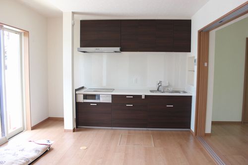 リビングと続き間だった和室と縁側を全面フローリング貼りの広々LDKに。 段差やゆがみを解消して、内装を一新。キッチンを北側から南側に移して とても明るい空間になりました。 愛犬のためにコンセントを高い位置に取り付けました。