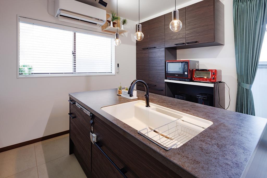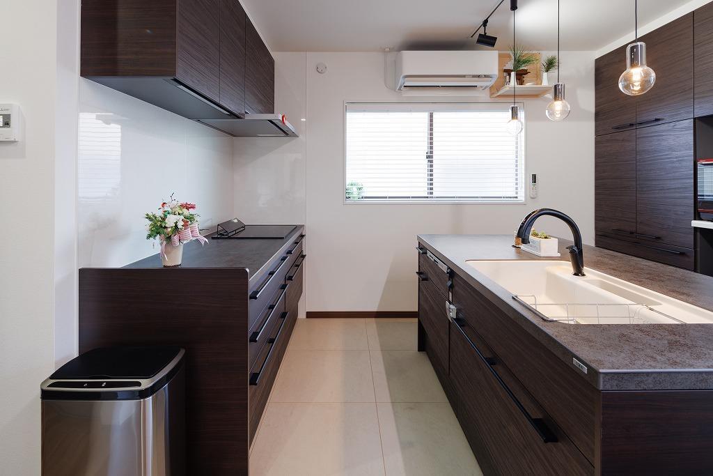 キッチンと壁の間は60cm。図面だと狭く感じるとご不安があったようですが、当時工事中でキッチンが近しい寸法のお宅をアドバイザーが案内させていただいたことで、実際に体感でき安心されたそうです。