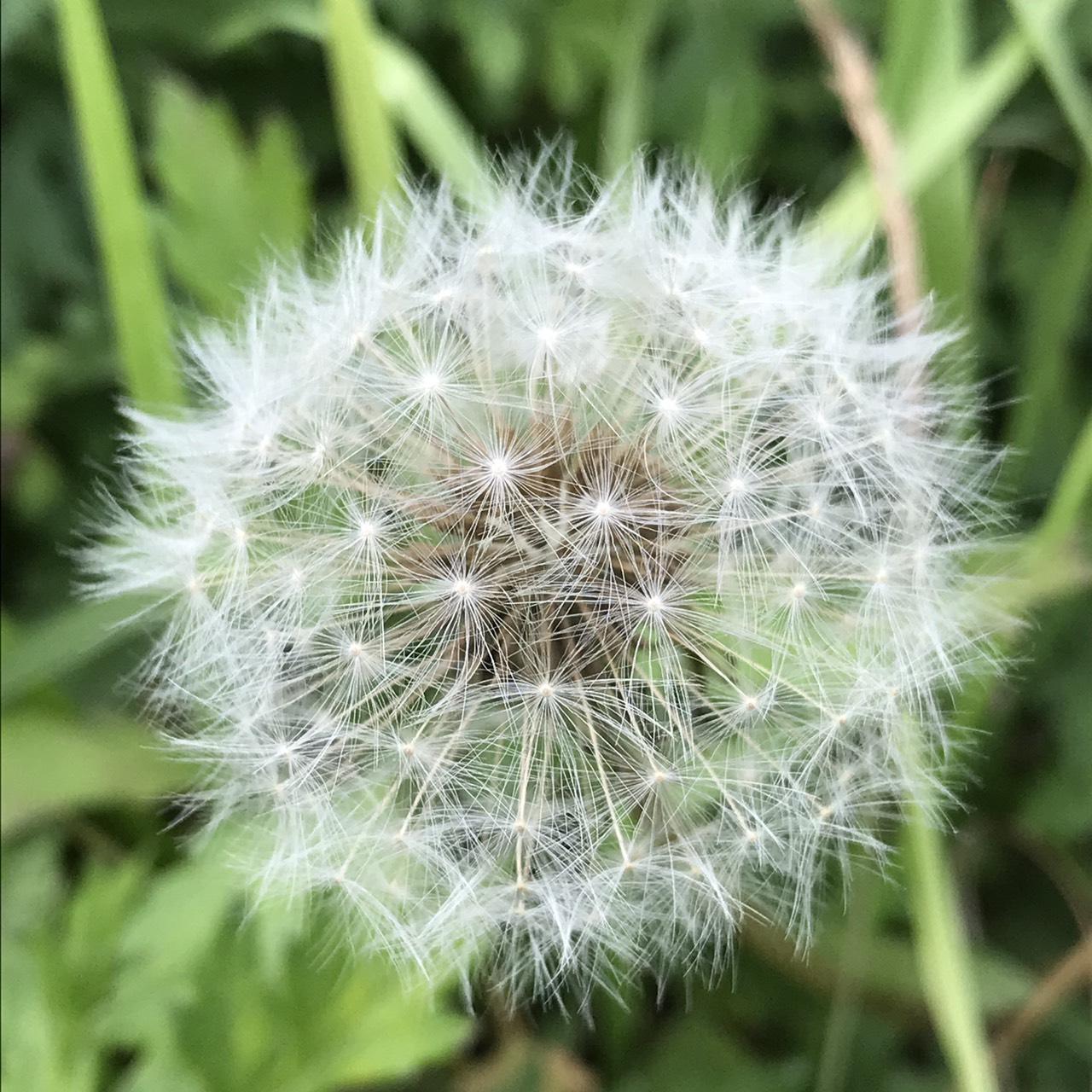 空地にポツンと見つけたタンポポの綿毛。タンポポは春に咲くイメージですが、