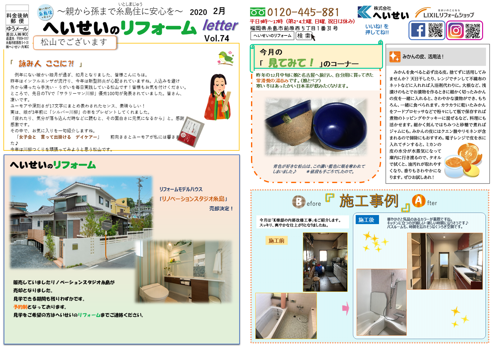 過去のリフォームletterはこちらから:へいせいのリフォームホームページへ移動します