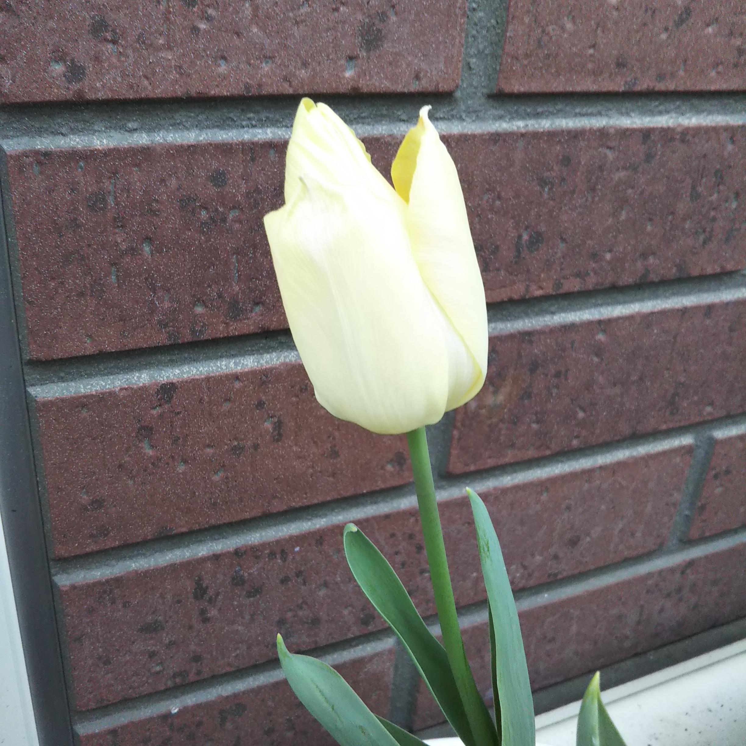 冬に植えたチューリップが黄色の花を咲かせました。
