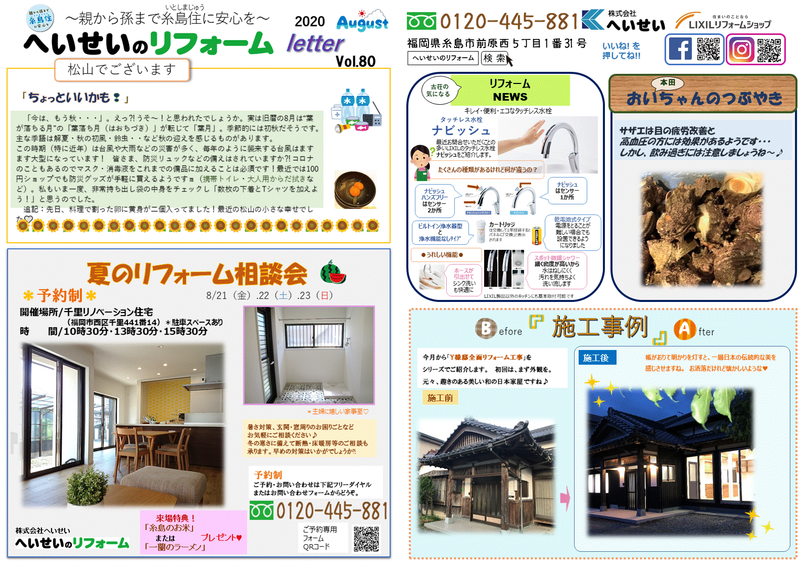 過去のリフォームletterはこちらから (へいせいのリフォームホームページへ移動します)