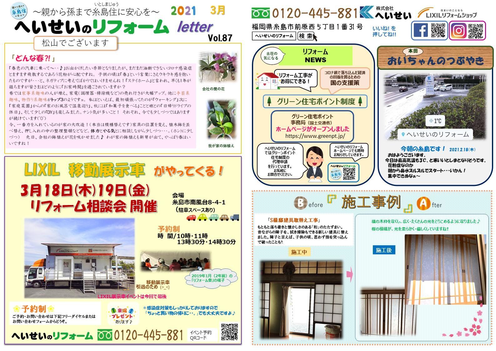 過去のリフォームletterはこちらから (へいせいのリフォームホームページへ移動します)