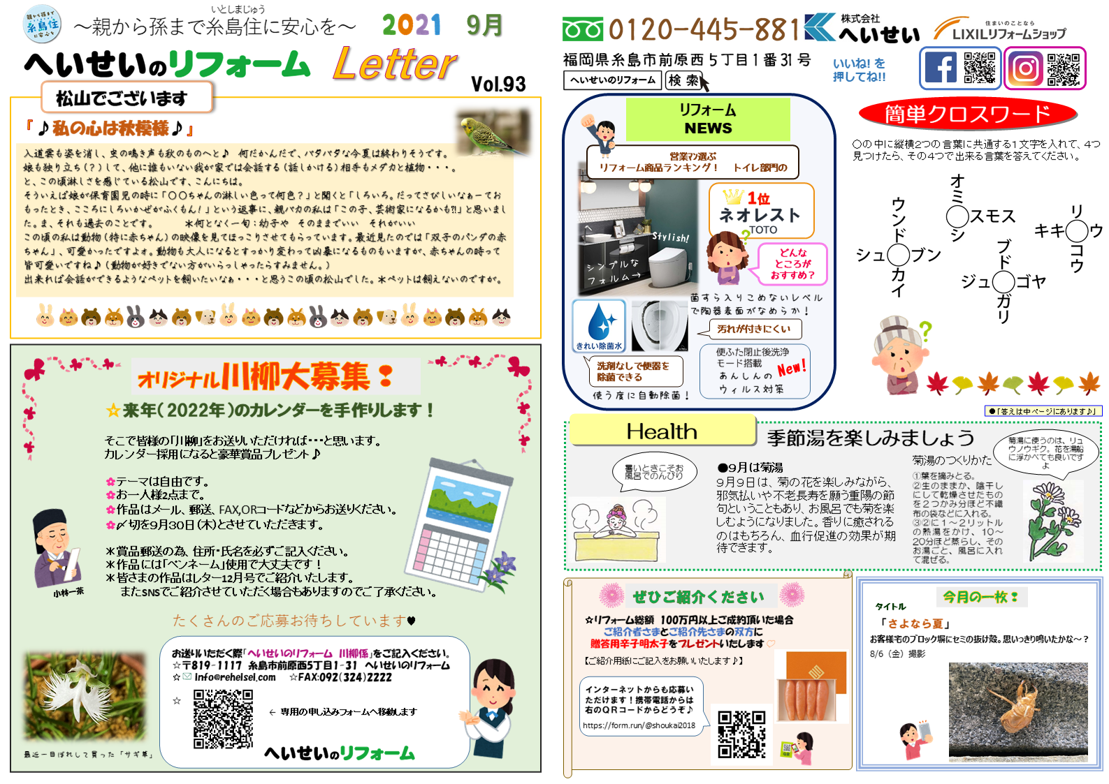 過去のリフォームletterはこちらから (へいせいのリフォームホームページへ移動します)