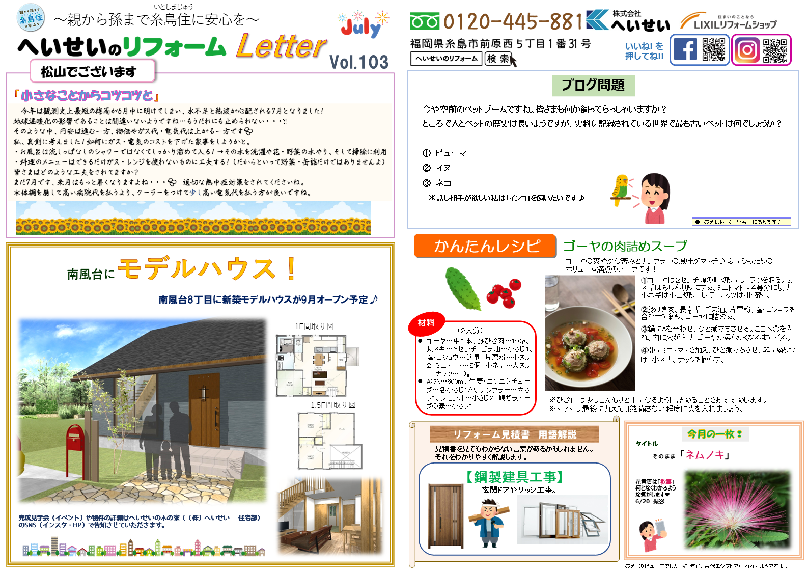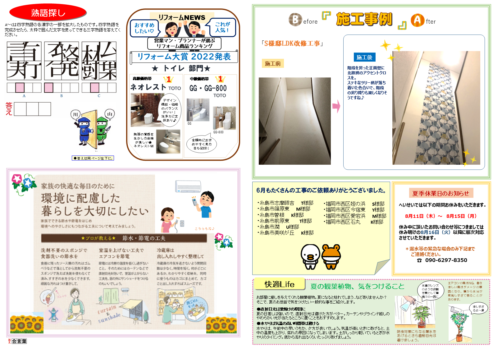 へいせいのリフォームletter 2022.7月号 【福岡市西区・糸島市】