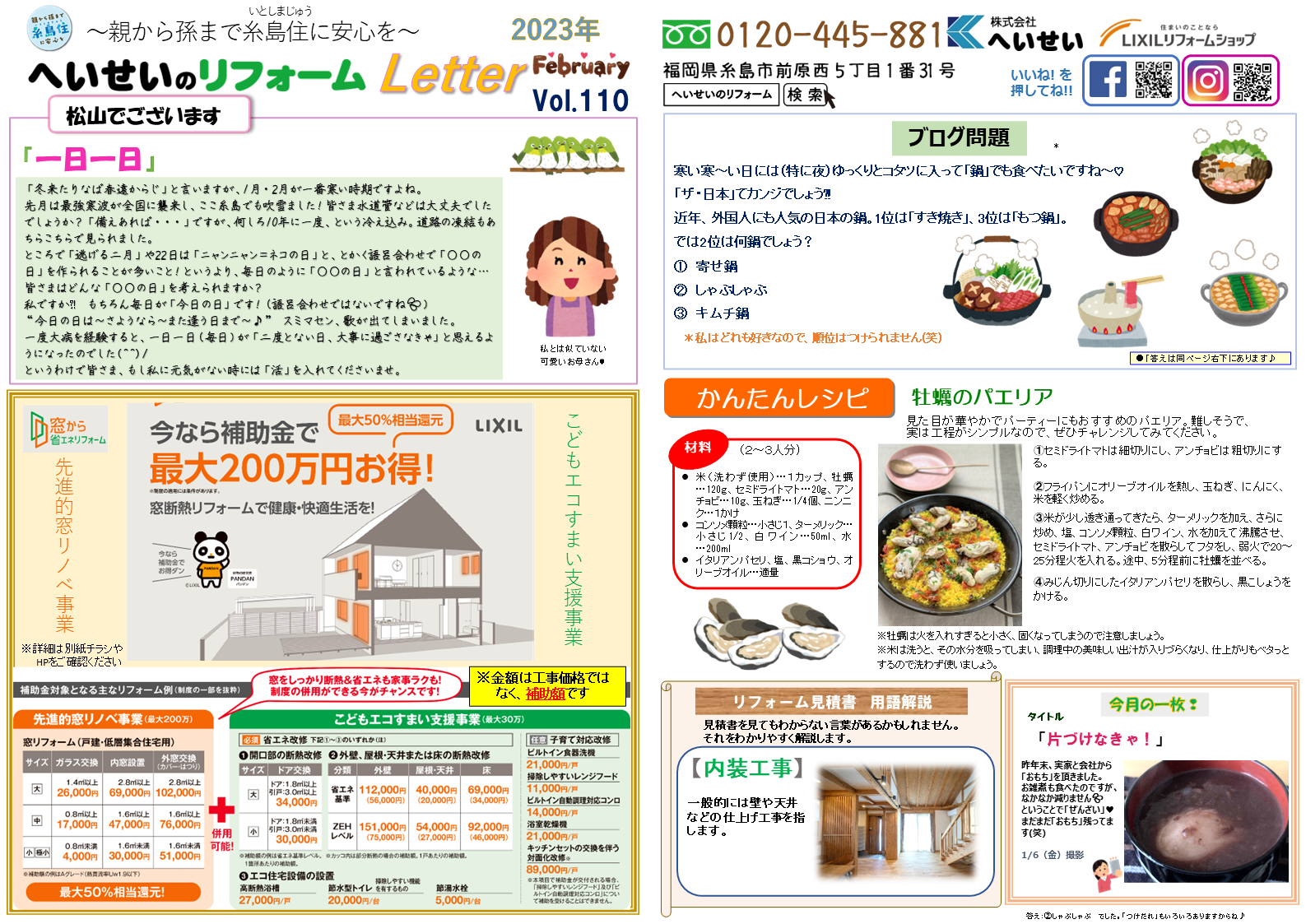 生活まめ知識などリフォームレターでご紹介しています♪