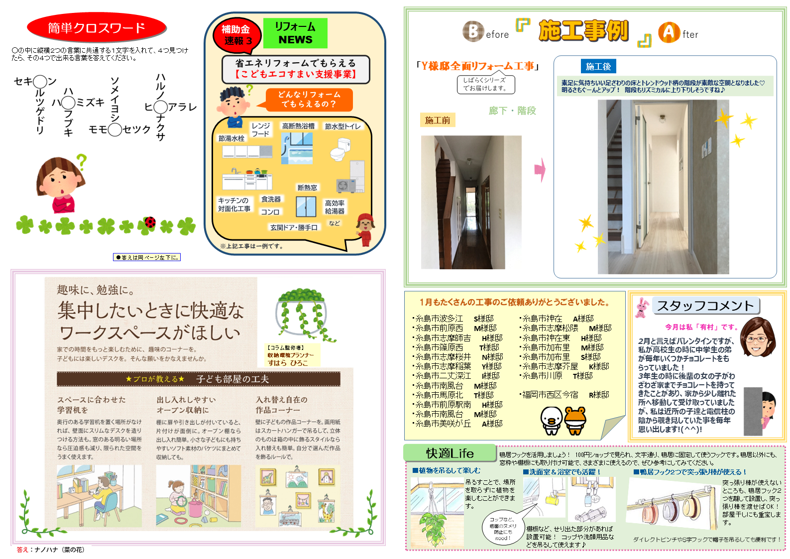 毎月、リフォーム事例・ほっこりする住まいメイトコラム