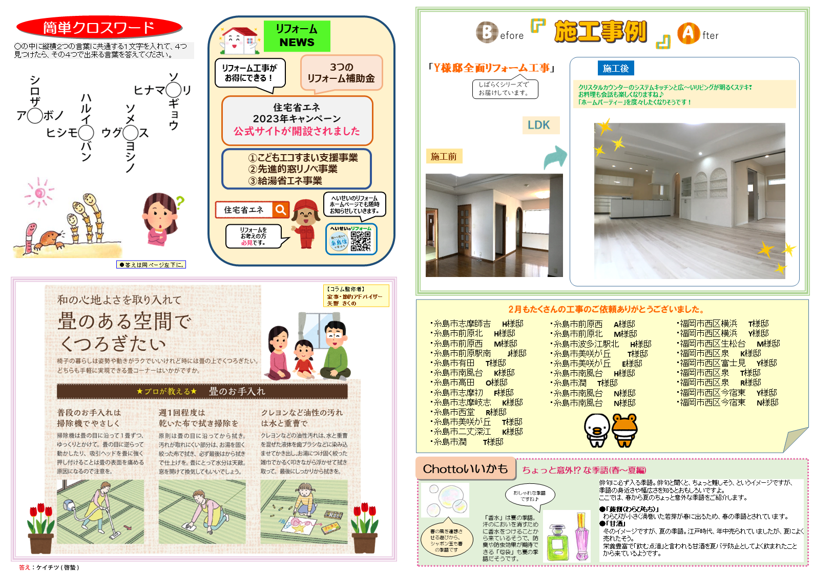 過去のリフォームletterはこちらから (へいせいのリフォームホームページへ移動します)