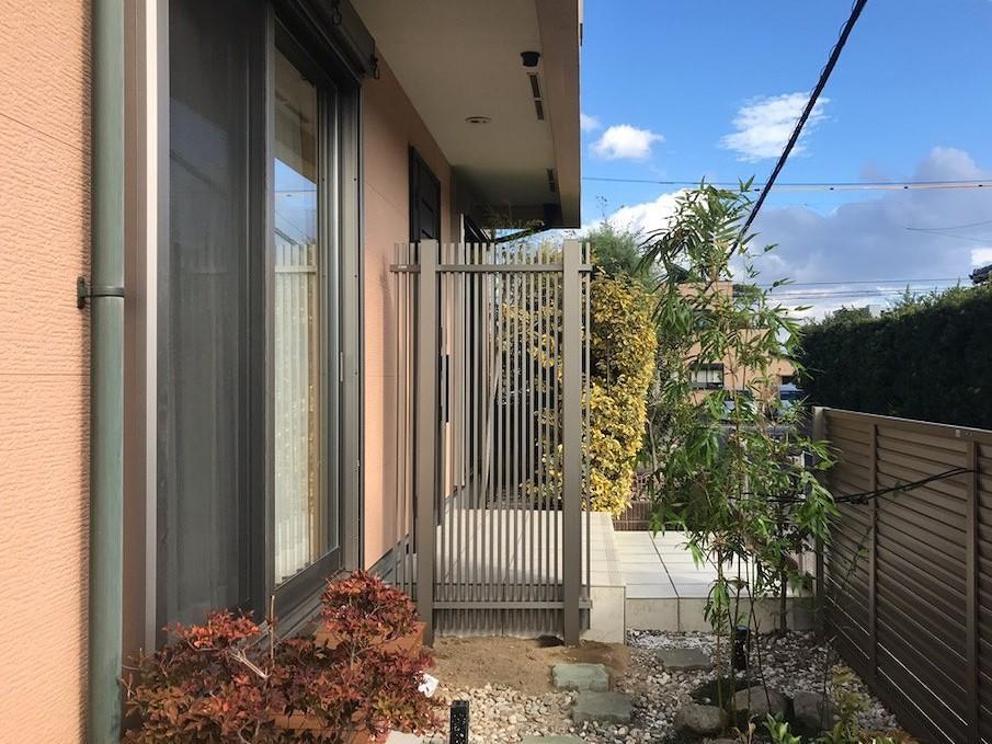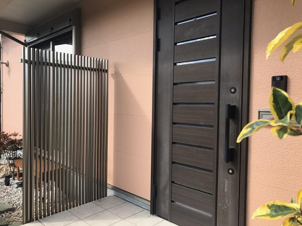 玄関扉の横にガーデンスクリーンを設置。
