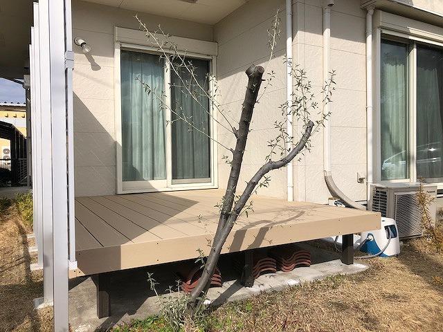 台風で倒れてしまった木製フェンスと既存のウッドデッキを撤去し