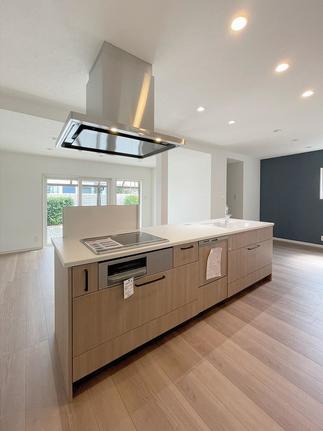 家の中心にあるキッチンで家事をしながら、リビングはもちろん居室や庭にいる家族の様子がわかる、みんなで暮らしを愉しめる家になりました。